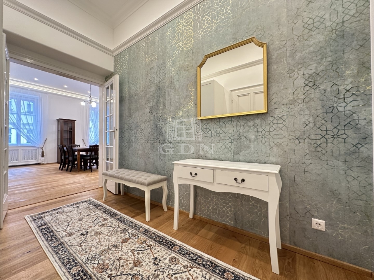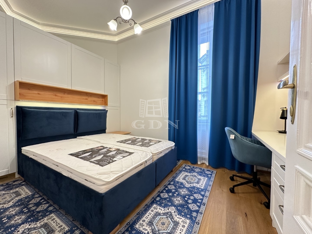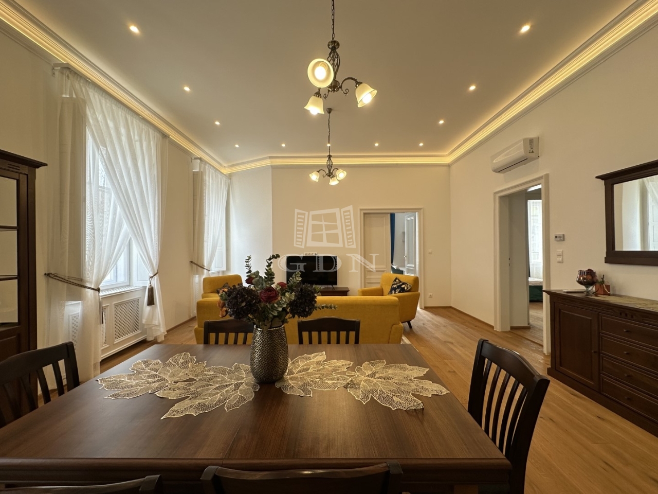 BL-003992 Történelmi Belvárosban (Fő utcán), frekventált helyen, társasházban első emeleti, 90 nm-es, 2 szobás + konyha-étkezős, tégla, exkluzívan felújított, belső építész által tervezett, gázkazán + radiátor fűtésű, tágas terekkel rendelkező lakás hosszútávra kiadó.