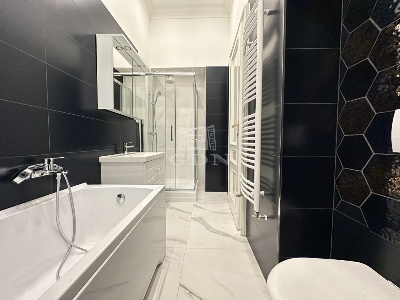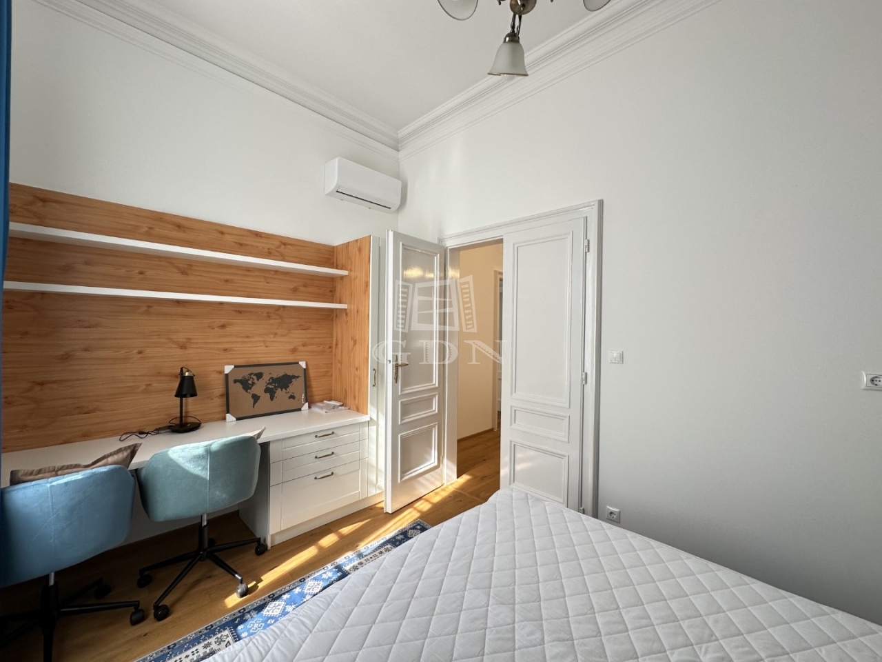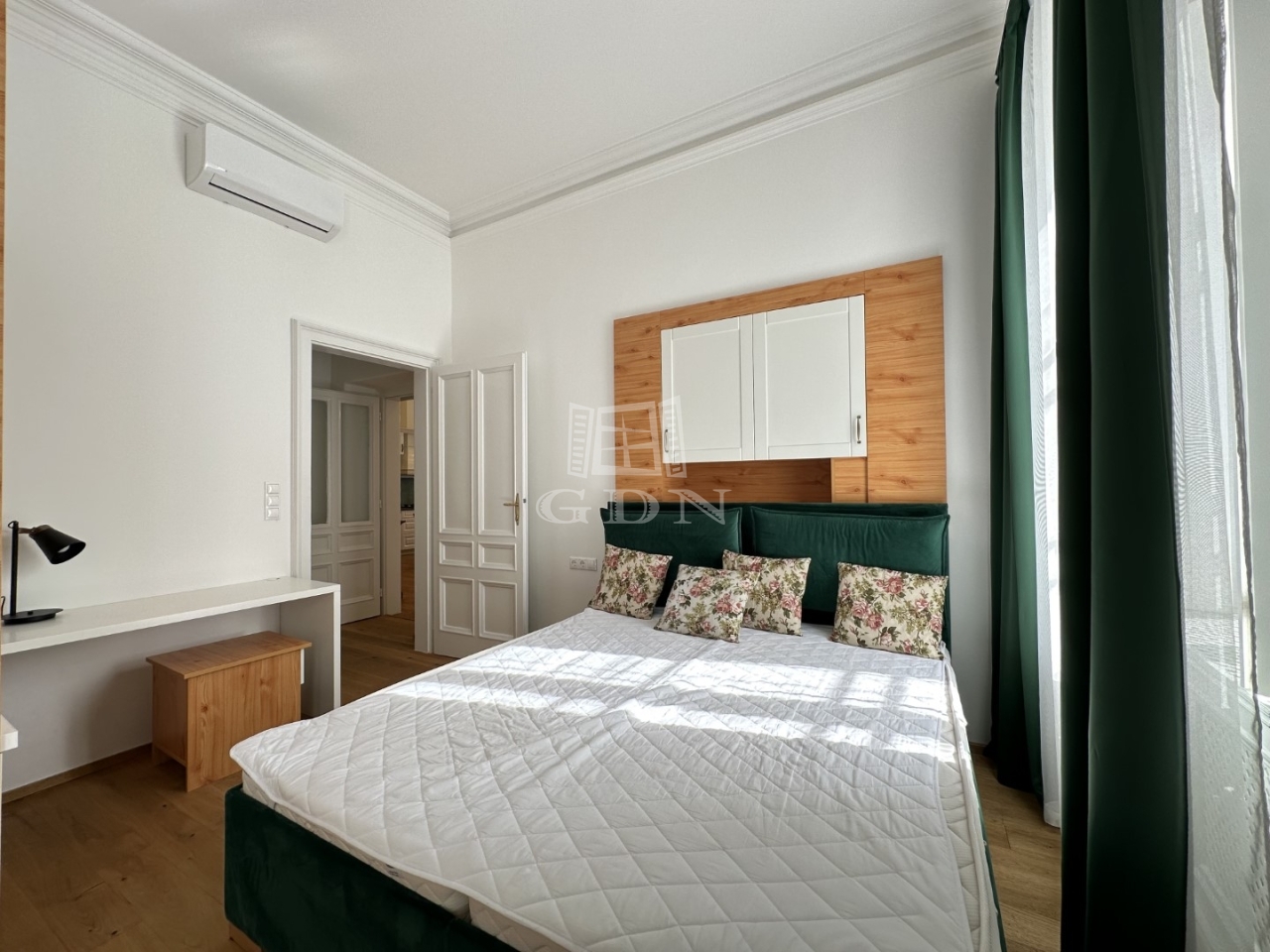 BL-003992 Történelmi Belvárosban (Fő utcán), frekventált helyen, társasházban első emeleti, 90 nm-es, 2 szobás + konyha-étkezős, tégla, exkluzívan felújított, belső építész által tervezett, gázkazán + radiátor fűtésű, tágas terekkel rendelkező lakás hosszútávra kiadó.