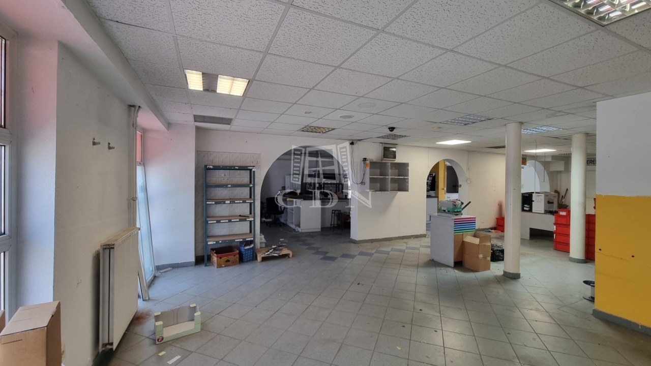 Elosztását tekintve egy egylégterű eladótérből, egy női/férfi mosdóból, egy teakonyhából és egy kis irodából áll.