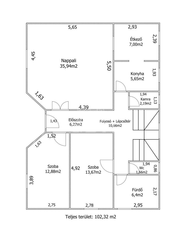 Földszint: 102,32 m²