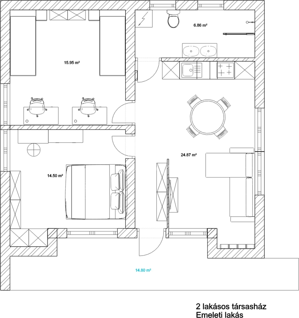 Kertkapcsolat: mindkét lakáshoz 200 m² saját kert