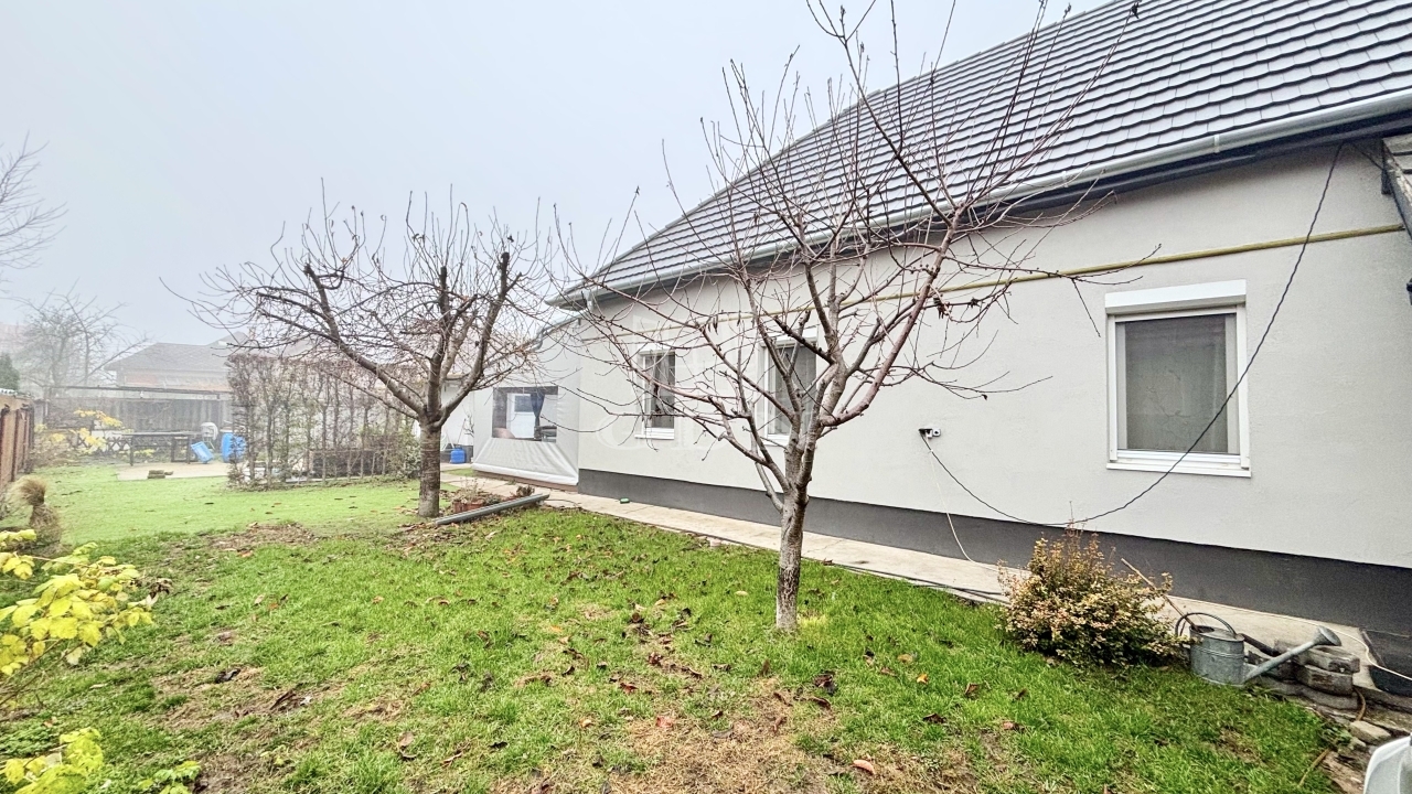 A kényelmesen karban tartható kertben helyet kapott egy fedett gépdcsibeálló, de ezen kívül 1 autó is kényelmesen elfér. Öntözésről egy ásott gyűrűs kút gondoskodik.