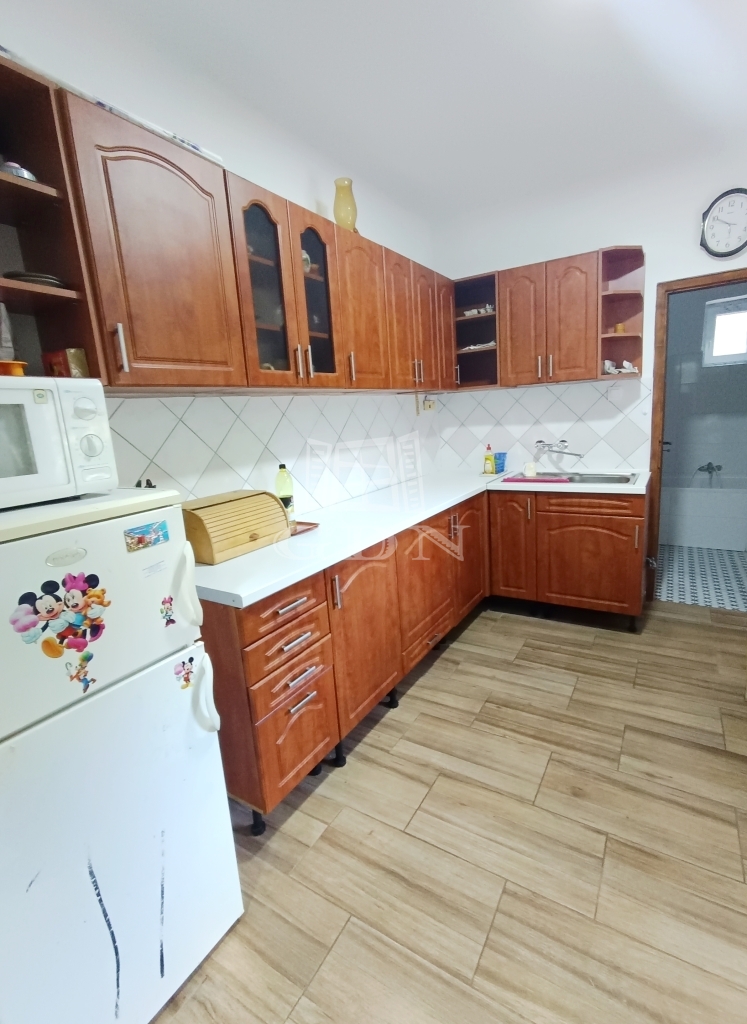 A felújított lakóházban egy nagy és egy kisebb szoba, egy konyha, egy fürdőszoba és egy közlekedő előtérrel lett kialakítva.