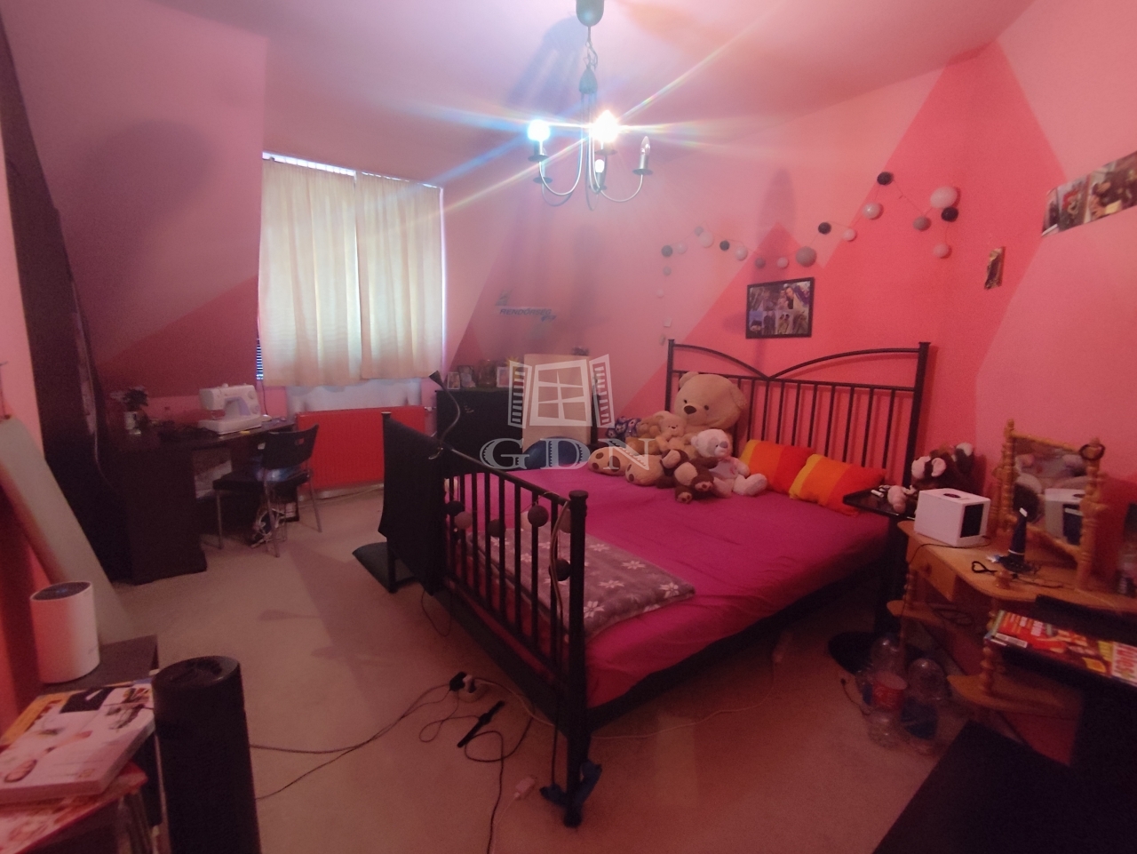 Emelet: két hálószoba, egy félszoba, valamint fürdőszoba WC-vel (egy helyiségben)