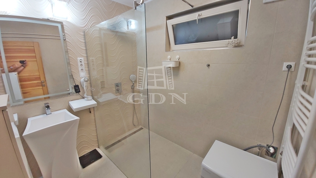 Bútorozott, gépesített (hűtőgép, mosógép, sütő, főzőlap, mikró sütő, TV-k, 3 db klíma készülék).
