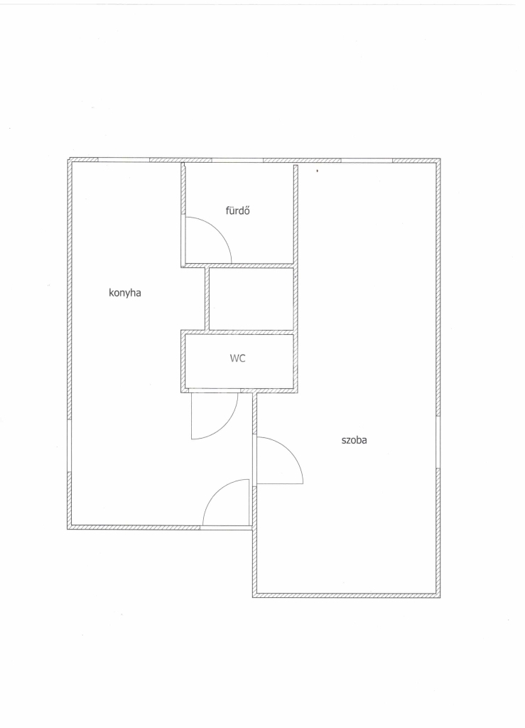 Az ingatlan jelenleg egy tágas szobával rendelkezik, mely mérete és 2 ablaka miatt akár 2 külön szobára is osztható.