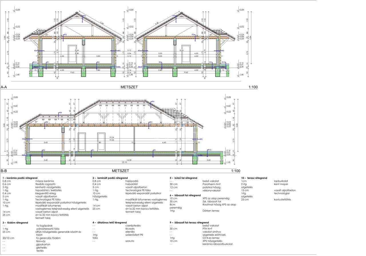 A terv minkét ikerfél esetében 128 m2-es, 4 külön hálószobával, amerikai konyhás nappalival, illetve két fürdőszobával és egy 19,8 m²-es garázzsal rendelkezik.