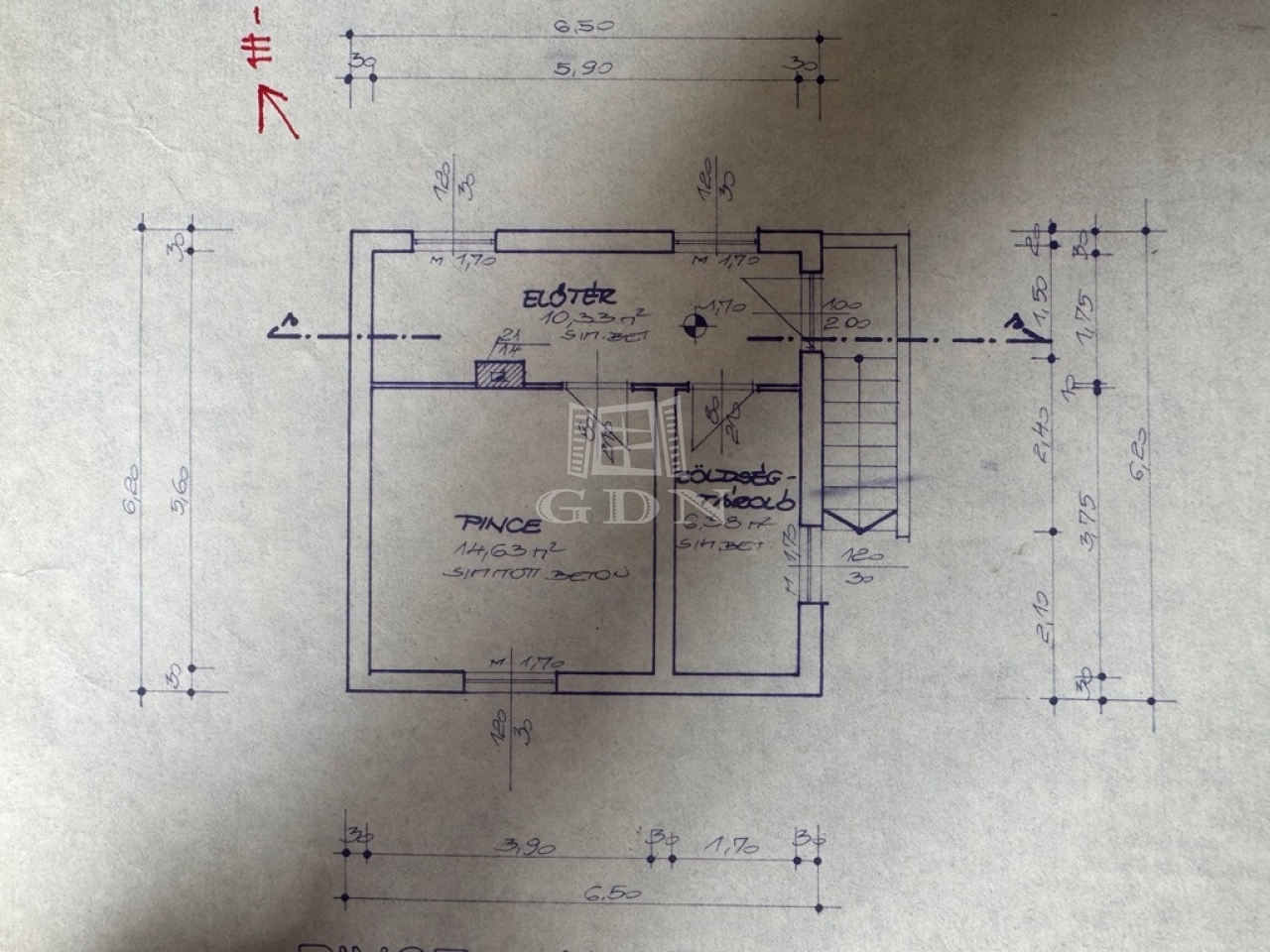 Pince: előtér 10,33m2, zöldség tároló 6,38m2, lakható pincehelyiség konyhával 14,63m2;