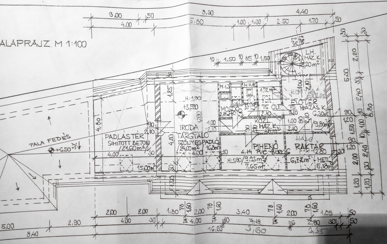 alsó szint: 1983-ban épült, tégla szerkezetű épület, lapostetővel