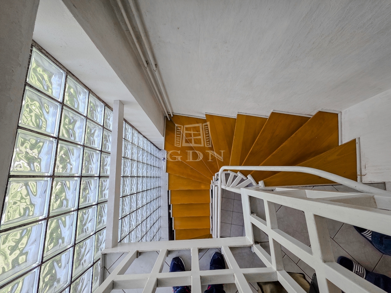 A felső szint jelenleg lakásként funkcionál, de kiválóan alkalmas irodának, rendelőnek vagy egyéb szolgáltató tevékenységre is.