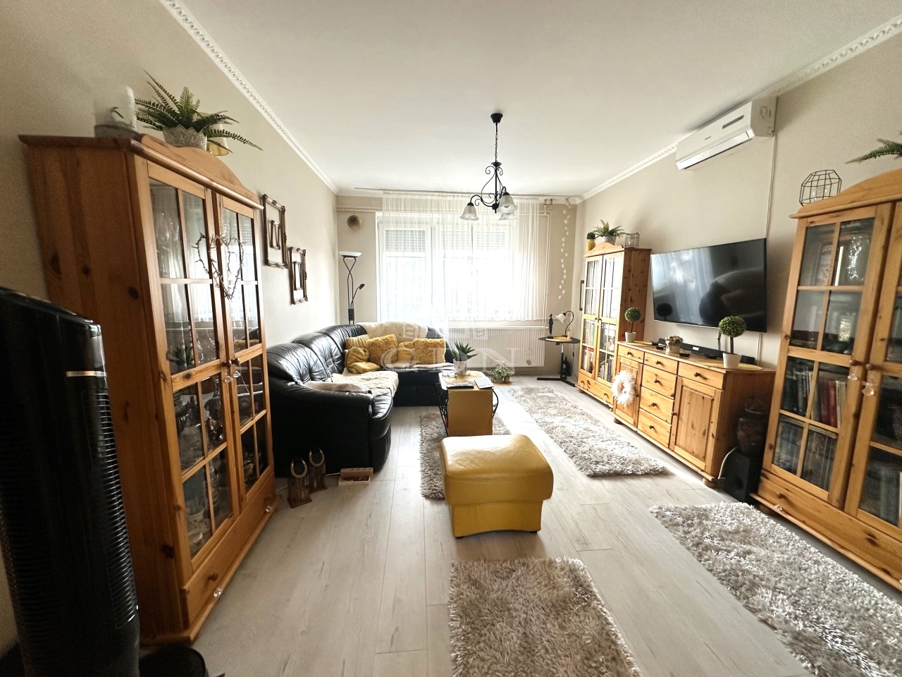 A 4 lakásos lépcsőházban elhelyezkedő első emeleti lakás 64 m2-es, mind műszakilag, mind esztétikailag teljes körűen felújított, hatalmas műanyag nyílászáróinak köszönhetően pedig nagyon világos is.