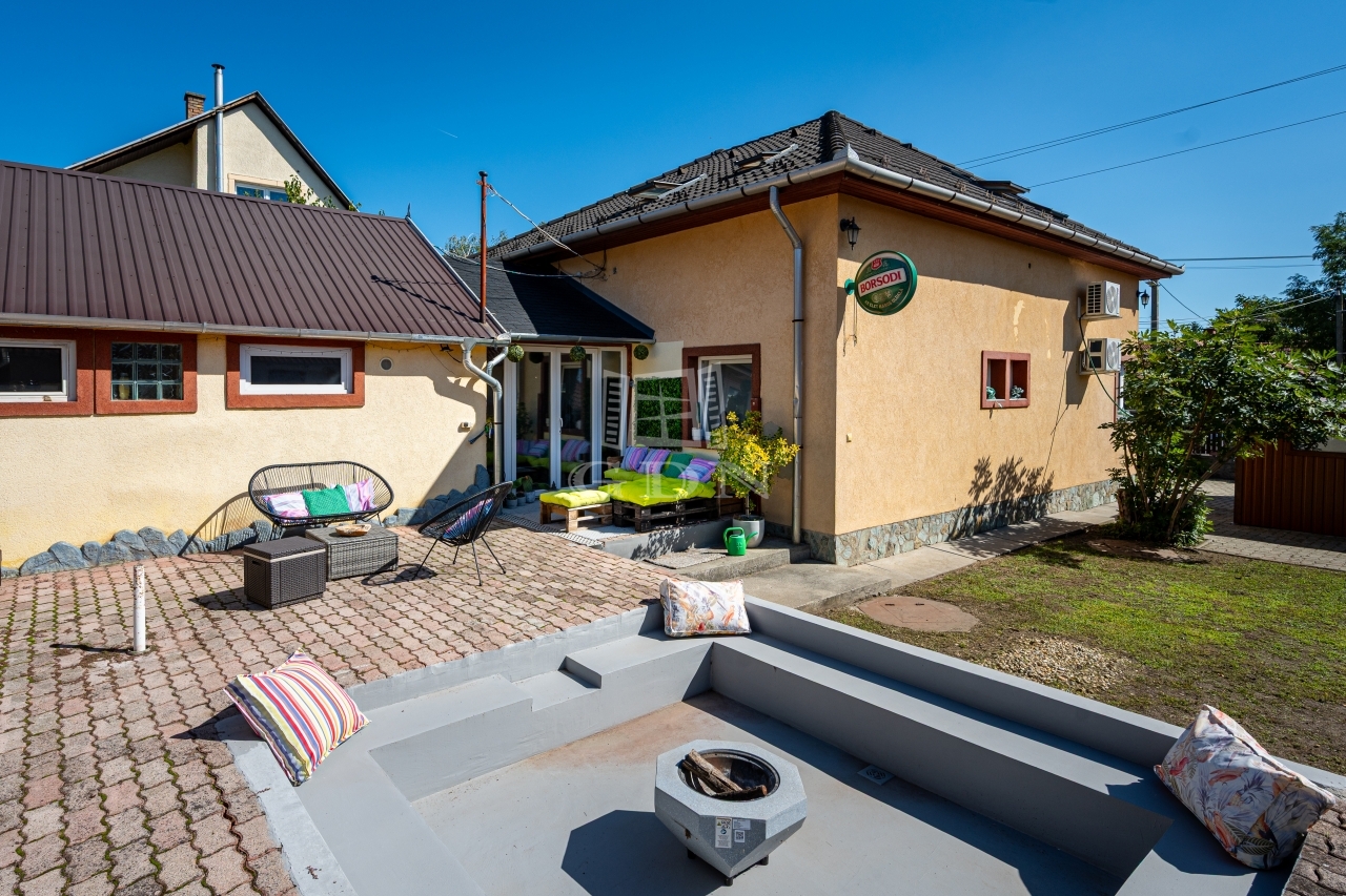 A pihenést és kikapcsolódást szolgálja a medence és a süllyesztett kerti sütögető, amely körül 12 fő is kényelmesen elfér.