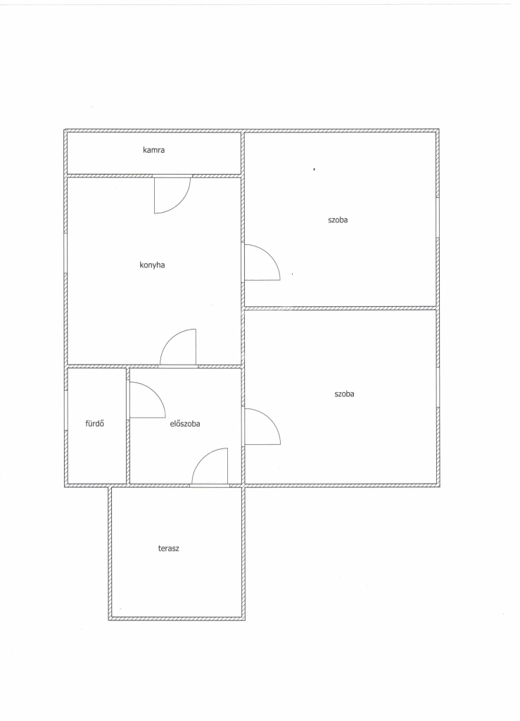 A 60 négyzetméteres, tégla építésű ingatlan két szobával, konyhával, fürdőszobával és előtérrel rendelkezik. Megközelíteni a fedett teraszon keresztül lehet.