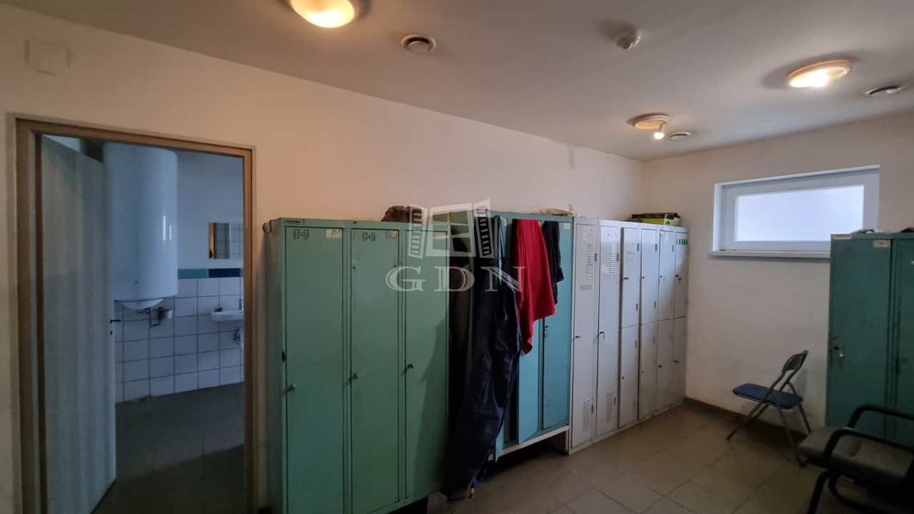 ‣ iroda, szoc. blokk és egyéb: 175m2 (5db irodahelyiség, teakonyha, étkező, női-férfi mosdó, zuhanyzós öltöző)