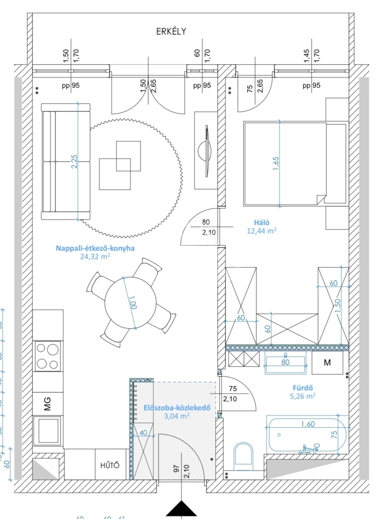 Az átgondolt alaprajzi módosításnak köszönhetően a terek jól kihasználtak és élhetőek. A keleti tájolásnak és a sok ablaknak köszönhetően a lakás rendkívül világos, ugyanakkor csendes. Az erkélyről szép, nyitott panoráma tárul elénk.