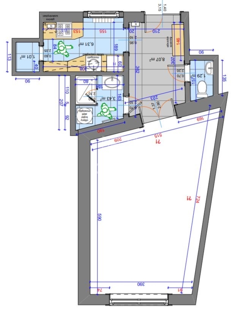 62 m2Alapterület 1 Szoba
