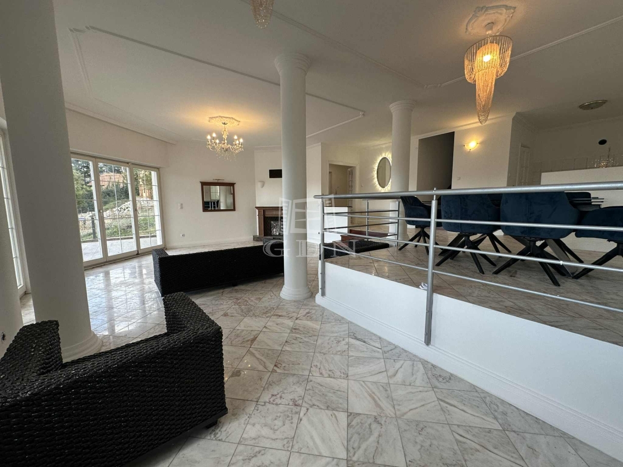 A II. kerület csendes, zöldövezeti részén, az Előd vezér útján eladó egy 380 m²-es, modern kialakítású, panorámás luxus családi ház, 1100 m²-es parkosított telken.