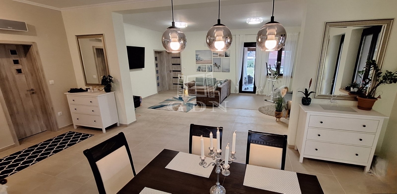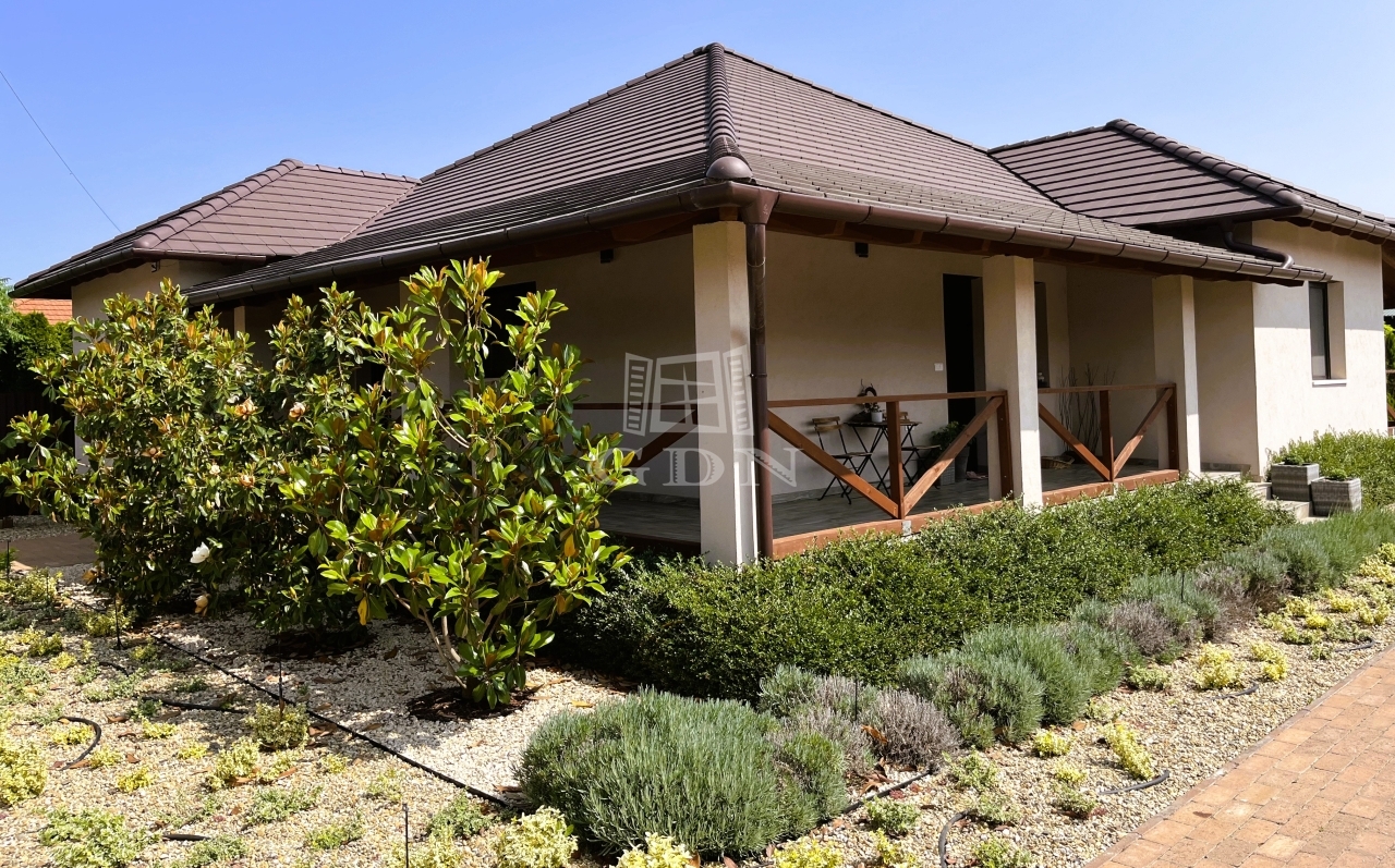 Világos, nagyvonalú terek, 68 m²-es nappali-központ, külön szülői lakrész – minden a kényelmes, jól élhető otthonról szól. Minőségi kivitelezés, átgondolt részletek, gondozott kert.