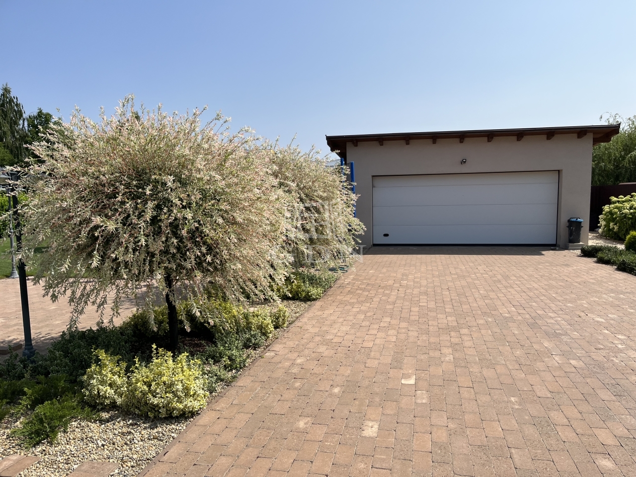 padlófűtés + klíma, elektromos redőnyök, riasztó, automata öntözés, robotfűnyíró, elektromos kapu, játszótér, grillterasz.