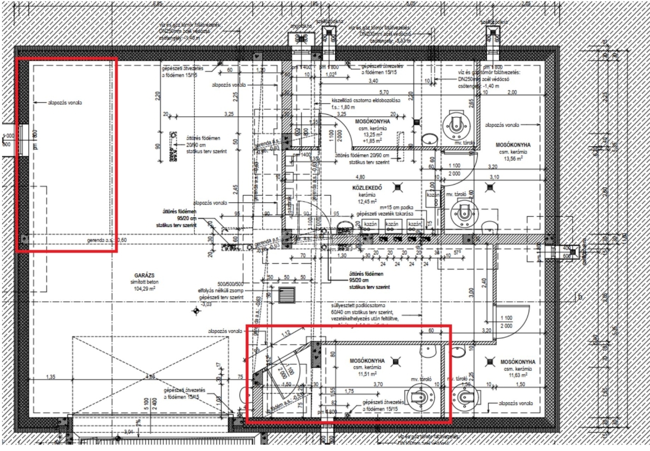 pincei mosókonyha/tároló: 12 m² (mosdó, mosógép csatlakozó)