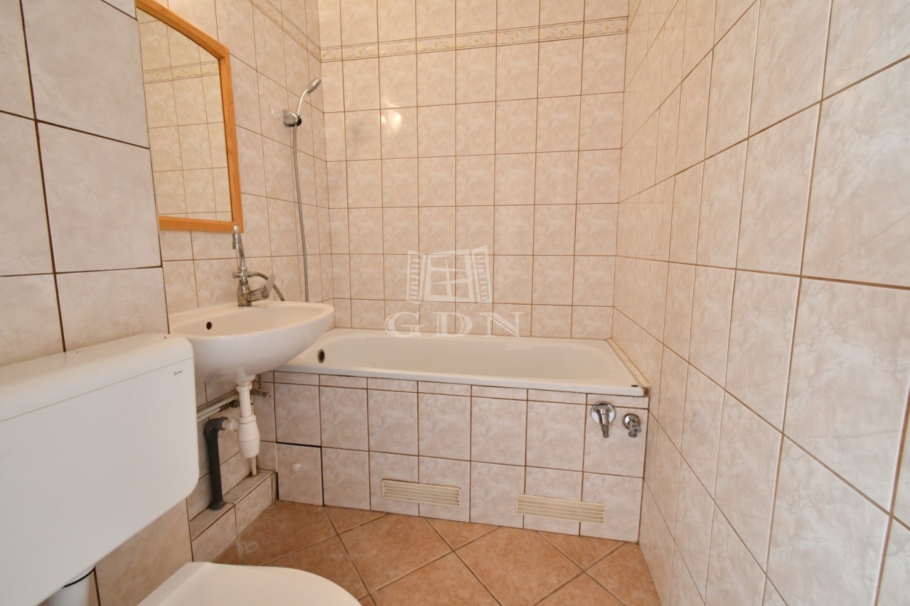 A kádas fürdő és a wc egy helyiségben található. Az ablakok újak, műanyag hőszigeteltek, az épület kívülről szigetelt.
