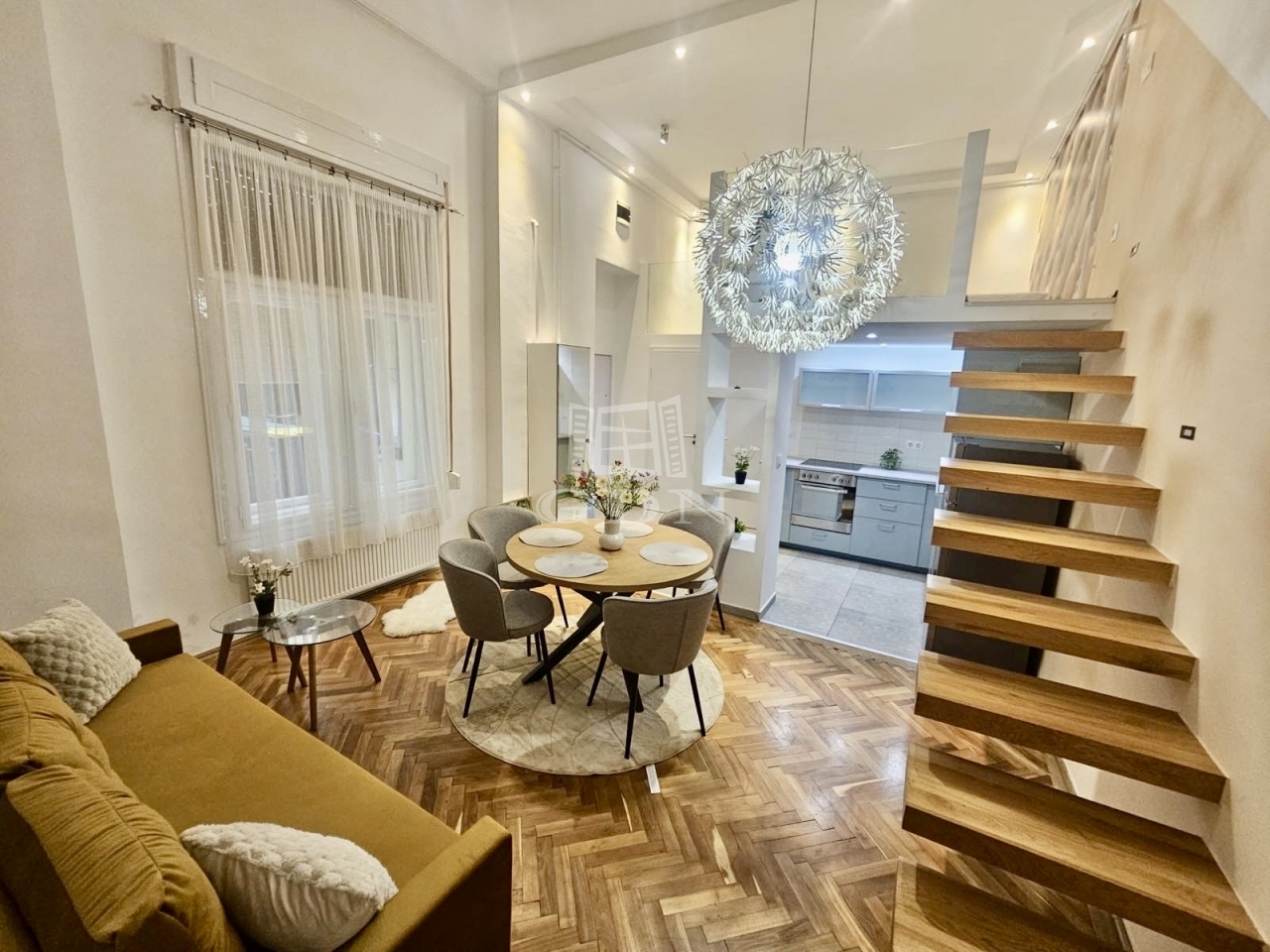 48 m²-es, 2 szobás, felújított lakás az Arany János utcában, földszinti elhelyezkedéssel. Az ingatlan különlegessége a praktikusan kialakított dupla galéria, amely jelentősen megnöveli a lakás használható életterét.