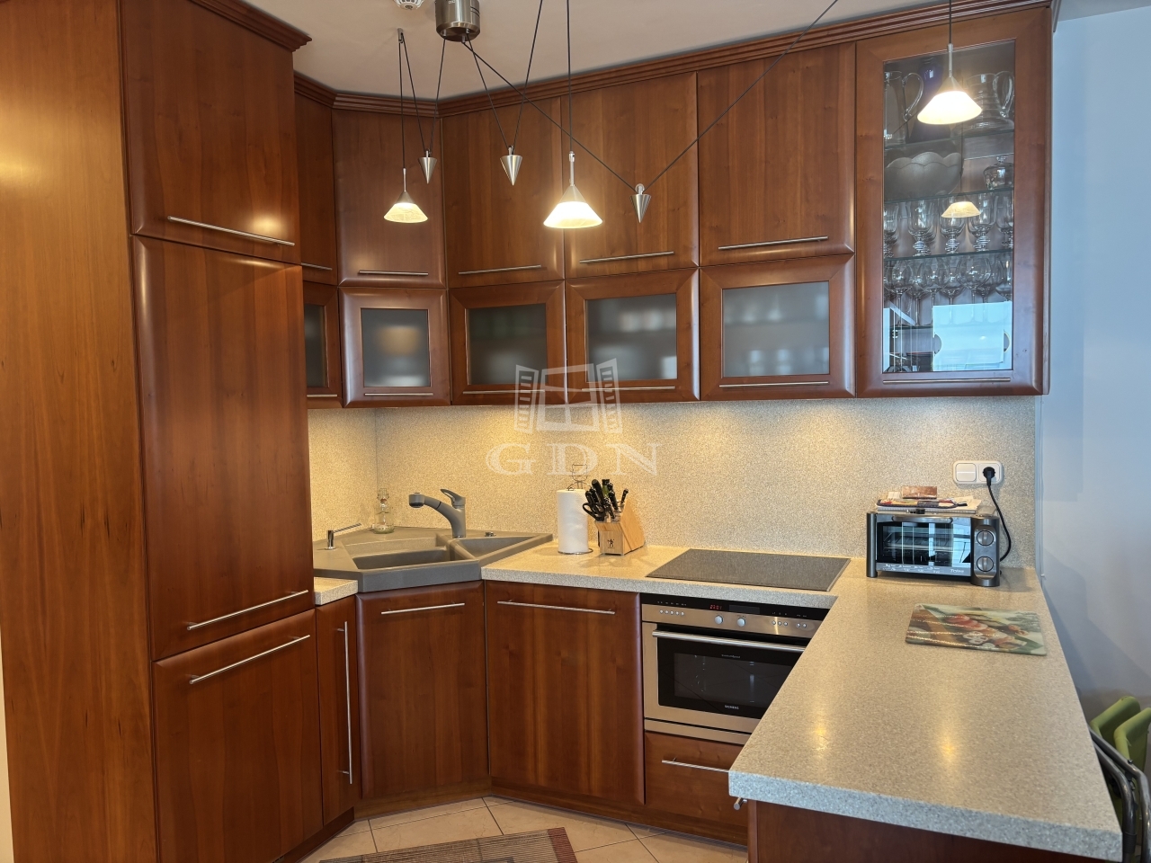 A lakás gáz-cirkó padlófűtéssel, hűtő-fűtő klímaberendezéssel, riasztó, műanyag nyílászárók redőnnyel és szúnyoghálóval szereltek.