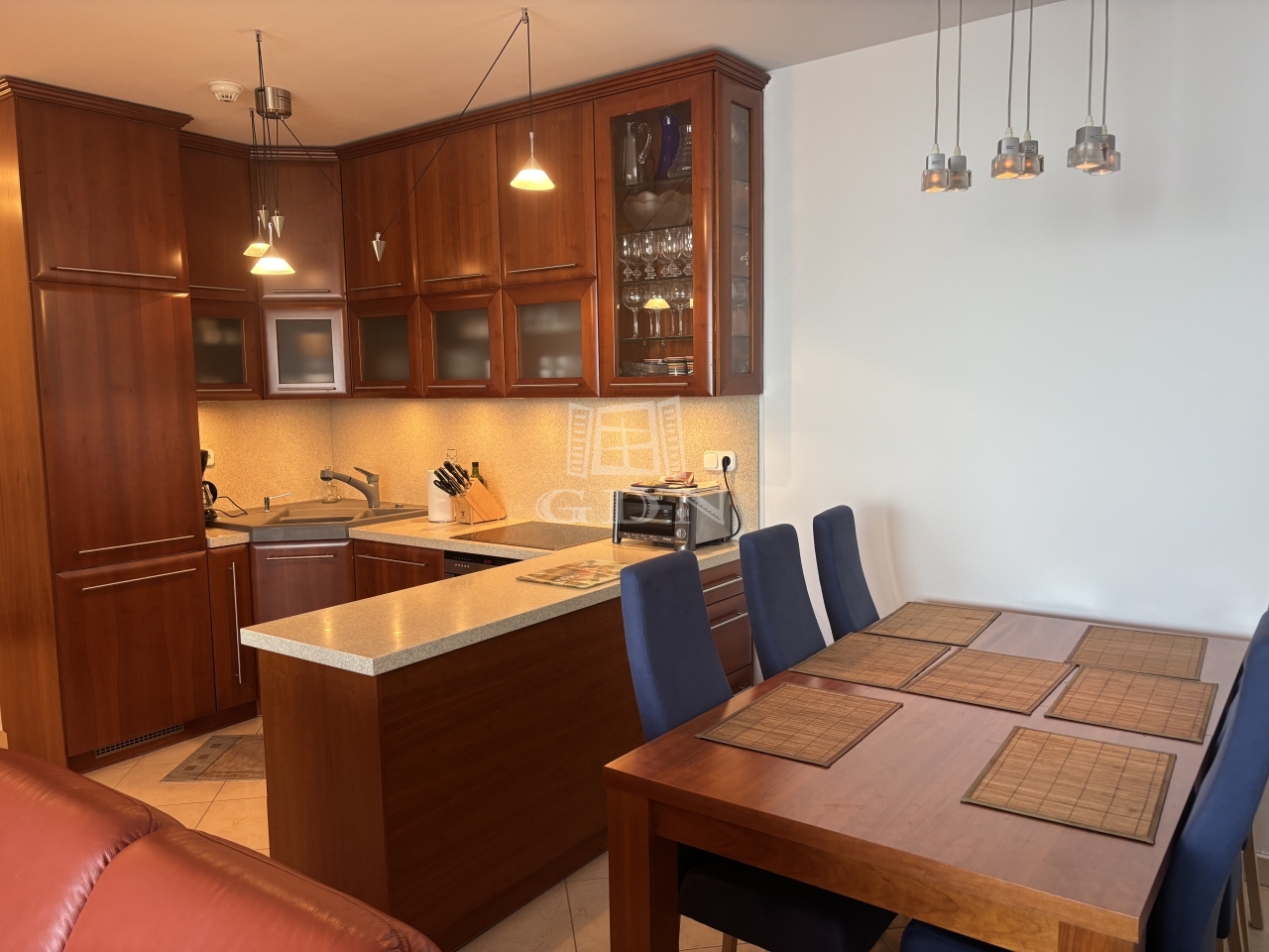 Az ingatlan nappali-amerikai konyhából, két hálószobából, fürdőszobából (hidromasszázs funkciós kád és zuhanyzó) és külön helységben lévő WC-ből, közlekedőből áll.