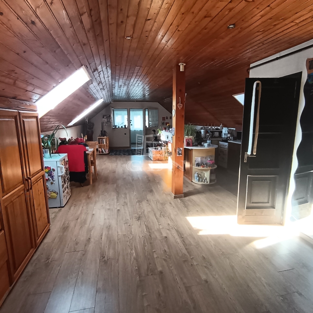 Tetőtéri rész amerikai konyhás nappalival + hálóval, külön WC-vel és fürdővel rendelkezik.