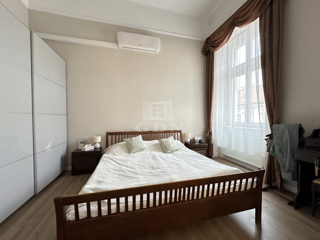 BL-004033 Történelmi Belvárosban (Fő utcán), frekventált helyen, társasházban első emeleti, 65 nm-es, nappali + 2 szobás + konyha-étkezős, tégla, gázkazán + radiátor fűtésű, tágas terekkel rendelkező, klimatizált lakás hosszútávra kiadó 2026.07.01 től.