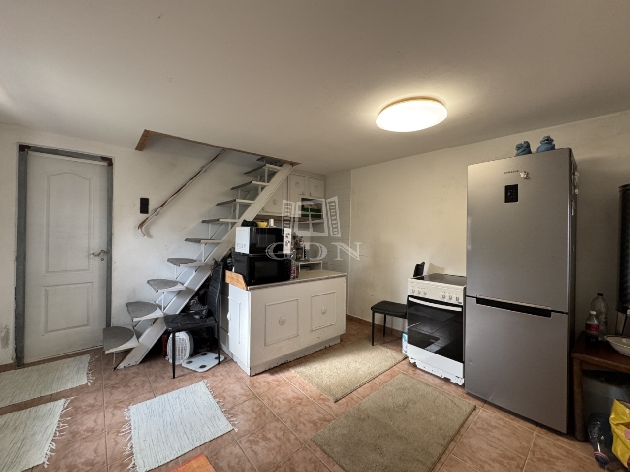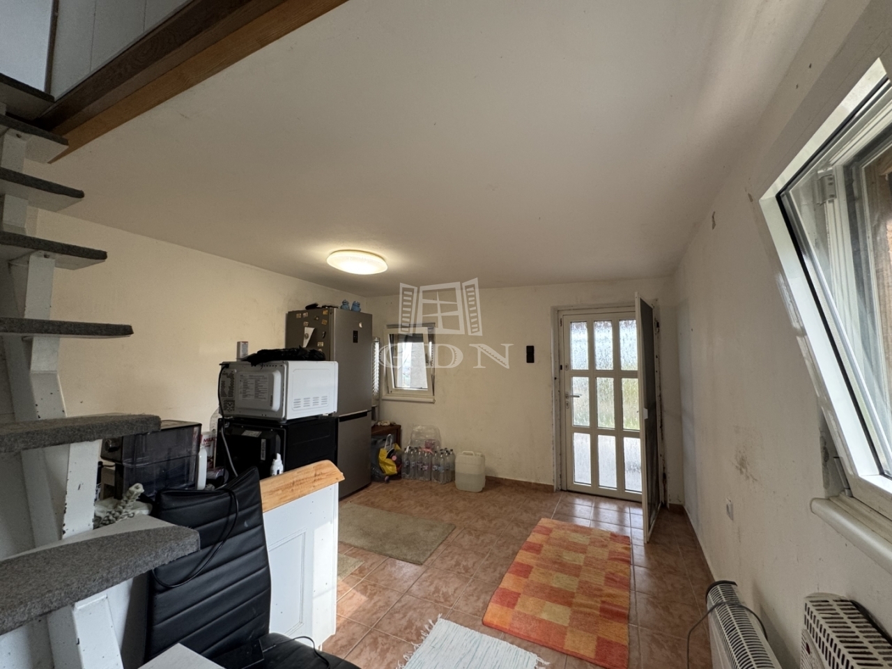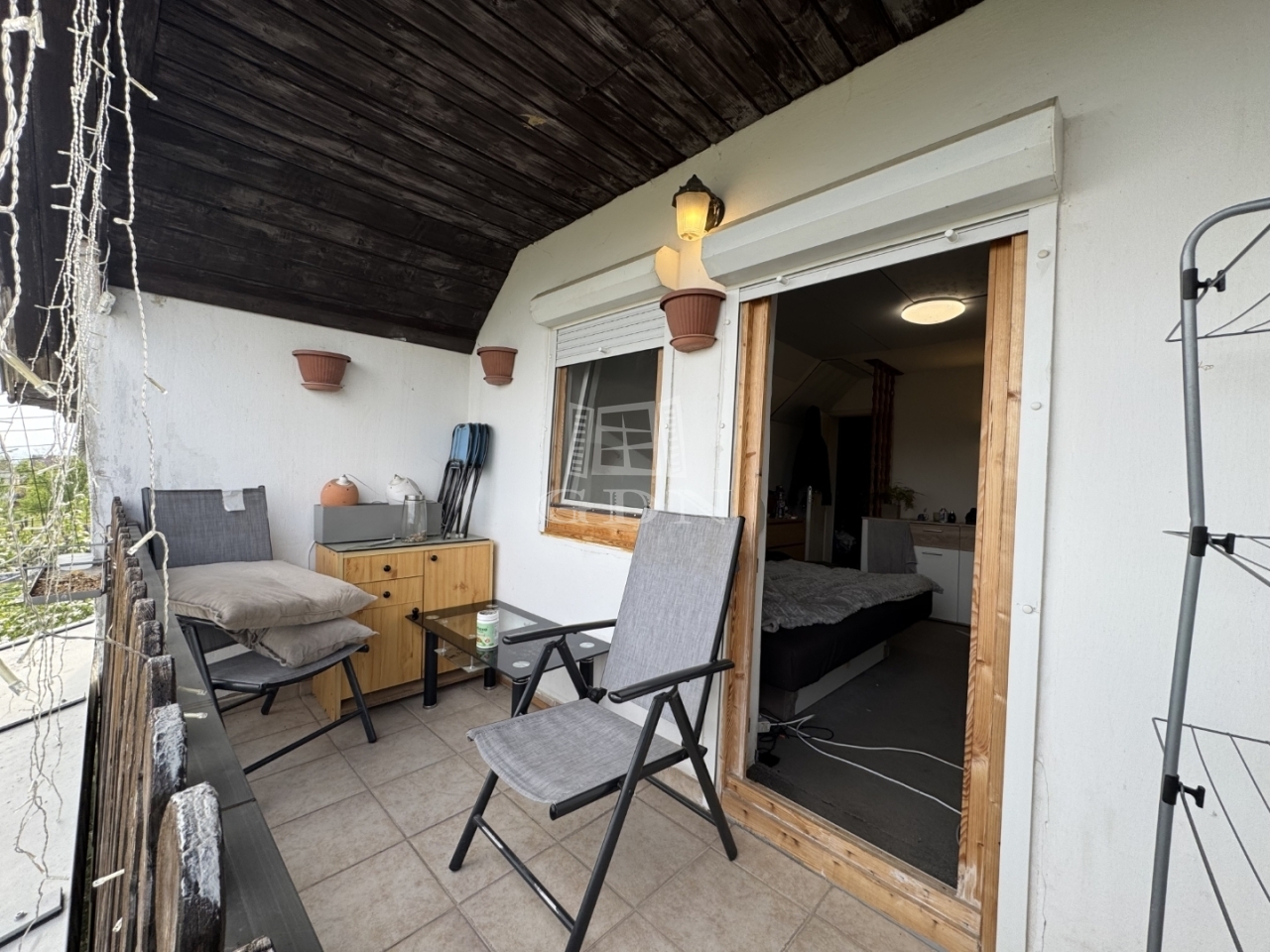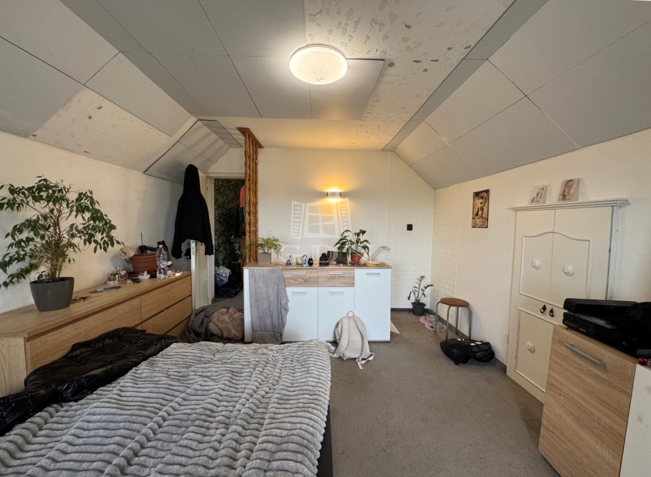 A földszinten konyha, fürdőszoba található, a tetőtéri részen pedig 2,- egymásból nyíló szoba és erkély került kialakításra.