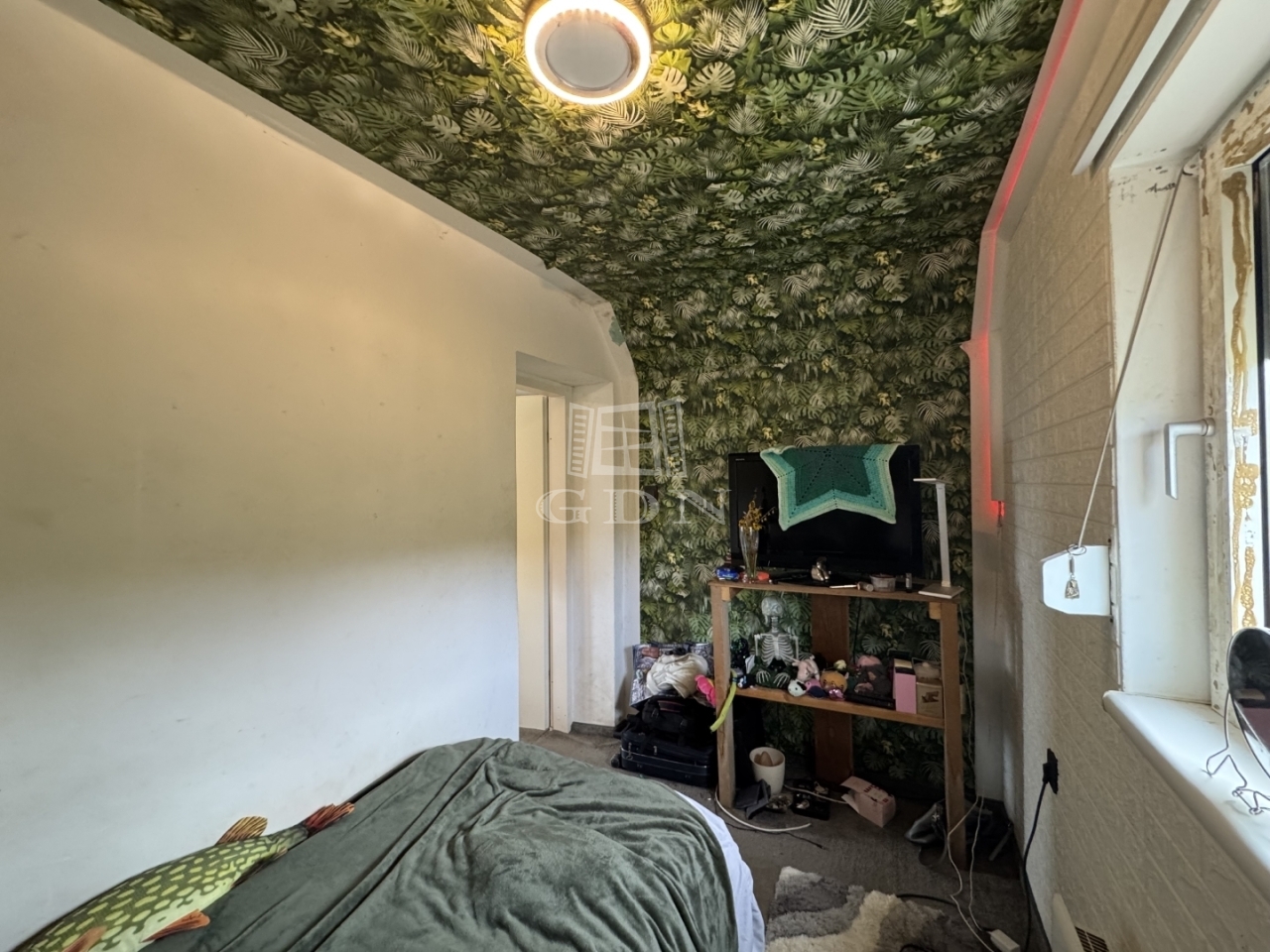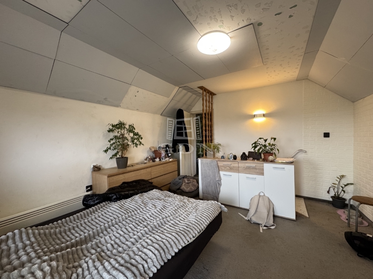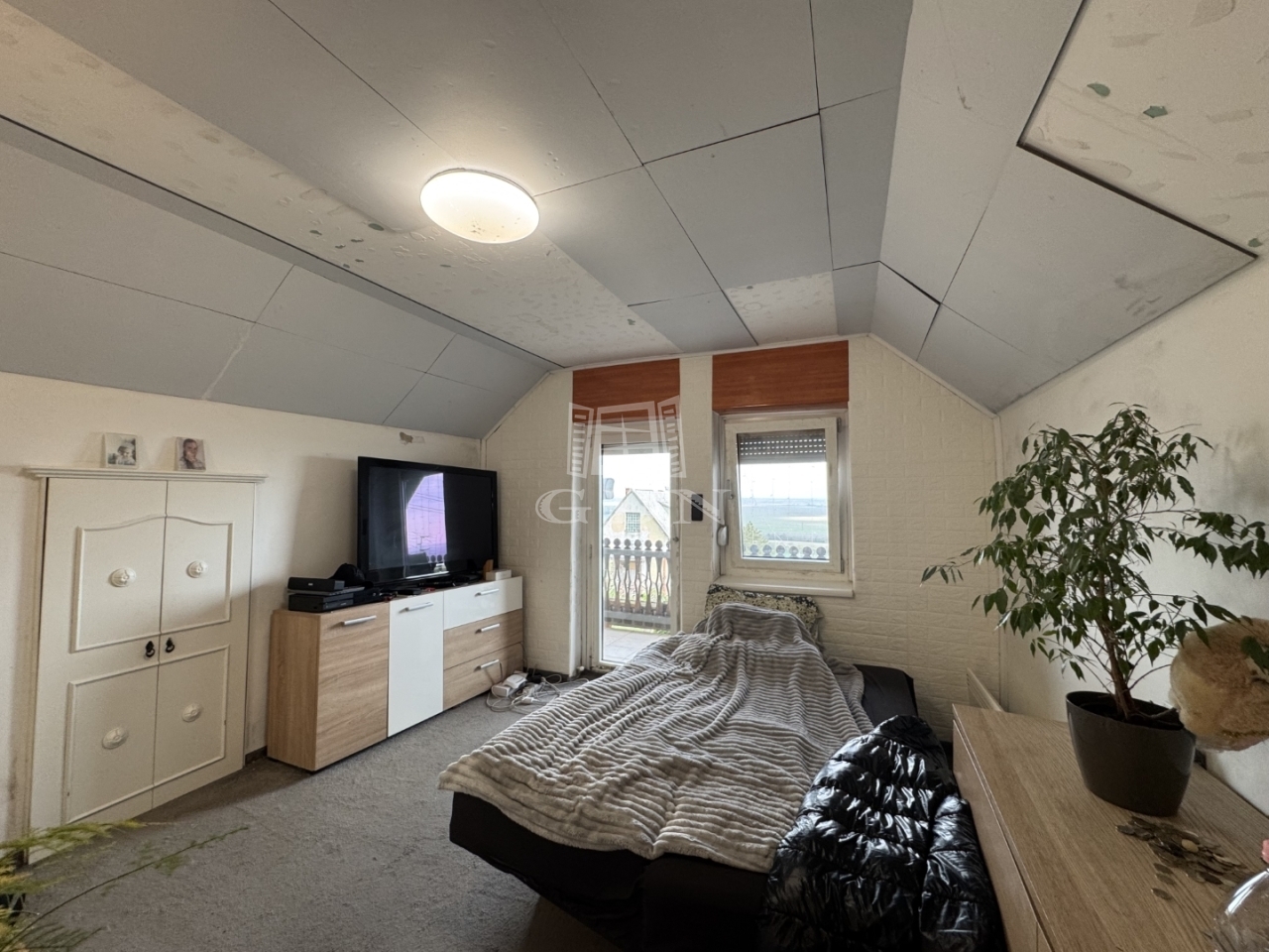 A földszinten konyha, fürdőszoba található, a tetőtéri részen pedig 2,- egymásból nyíló szoba és erkély került kialakításra.
