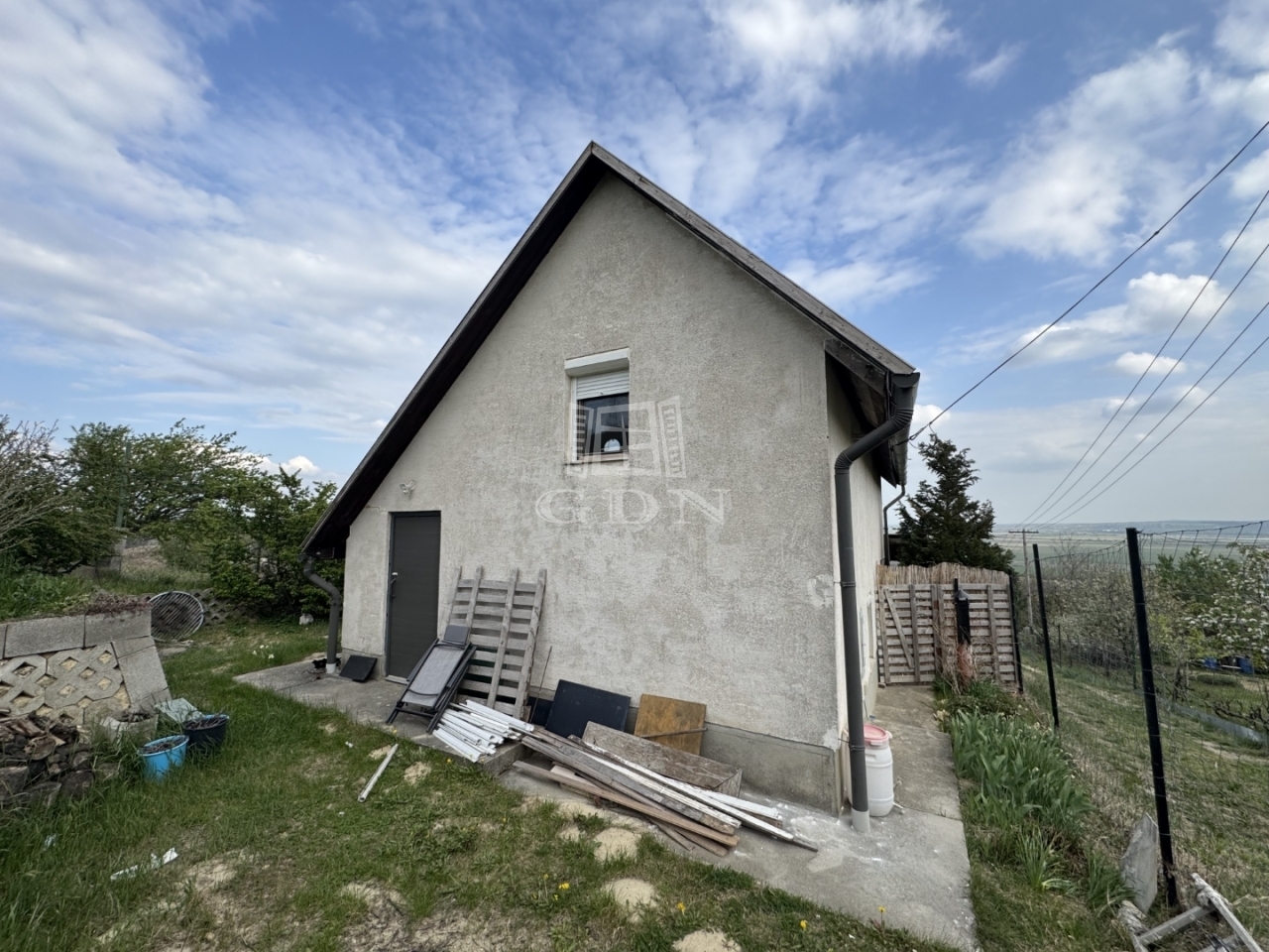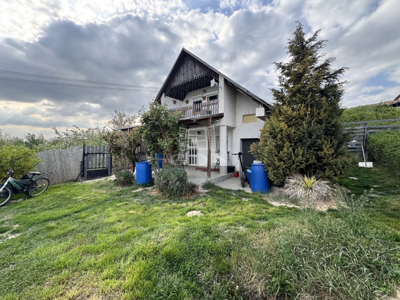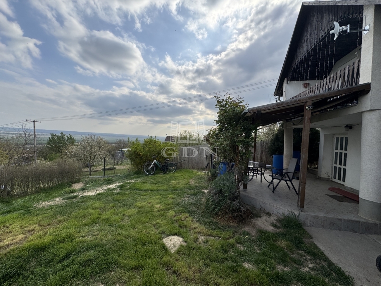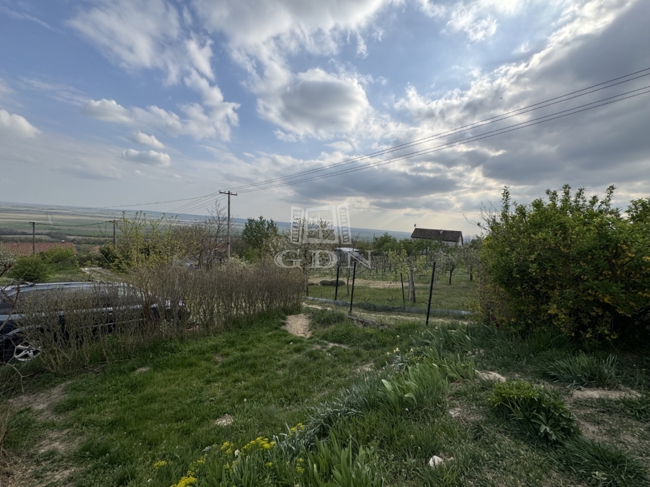 A telek 1000m2, egy része körbekerített. Enyhe lejtőn helyezkedik el.
