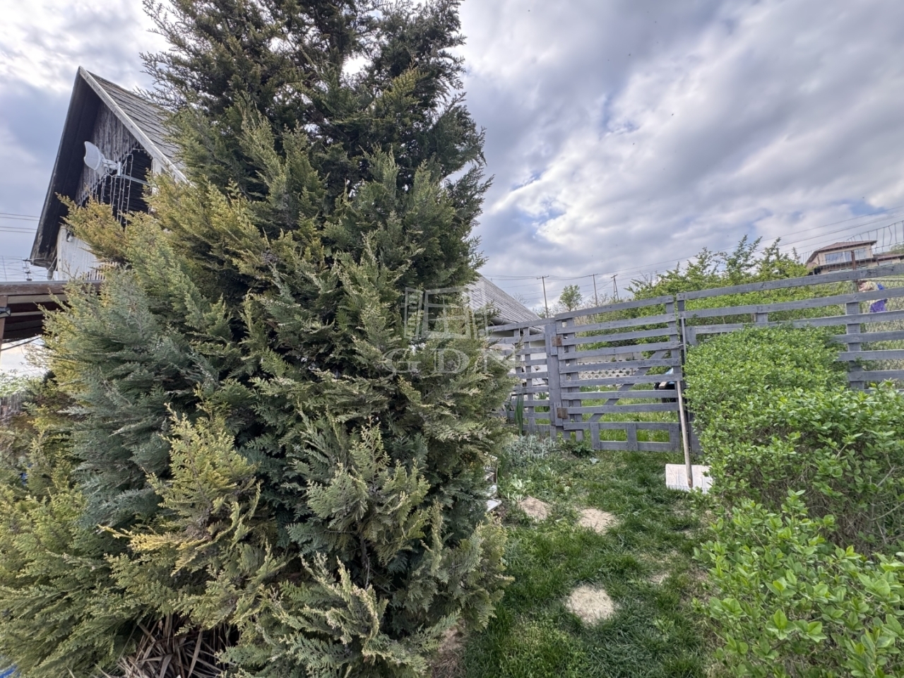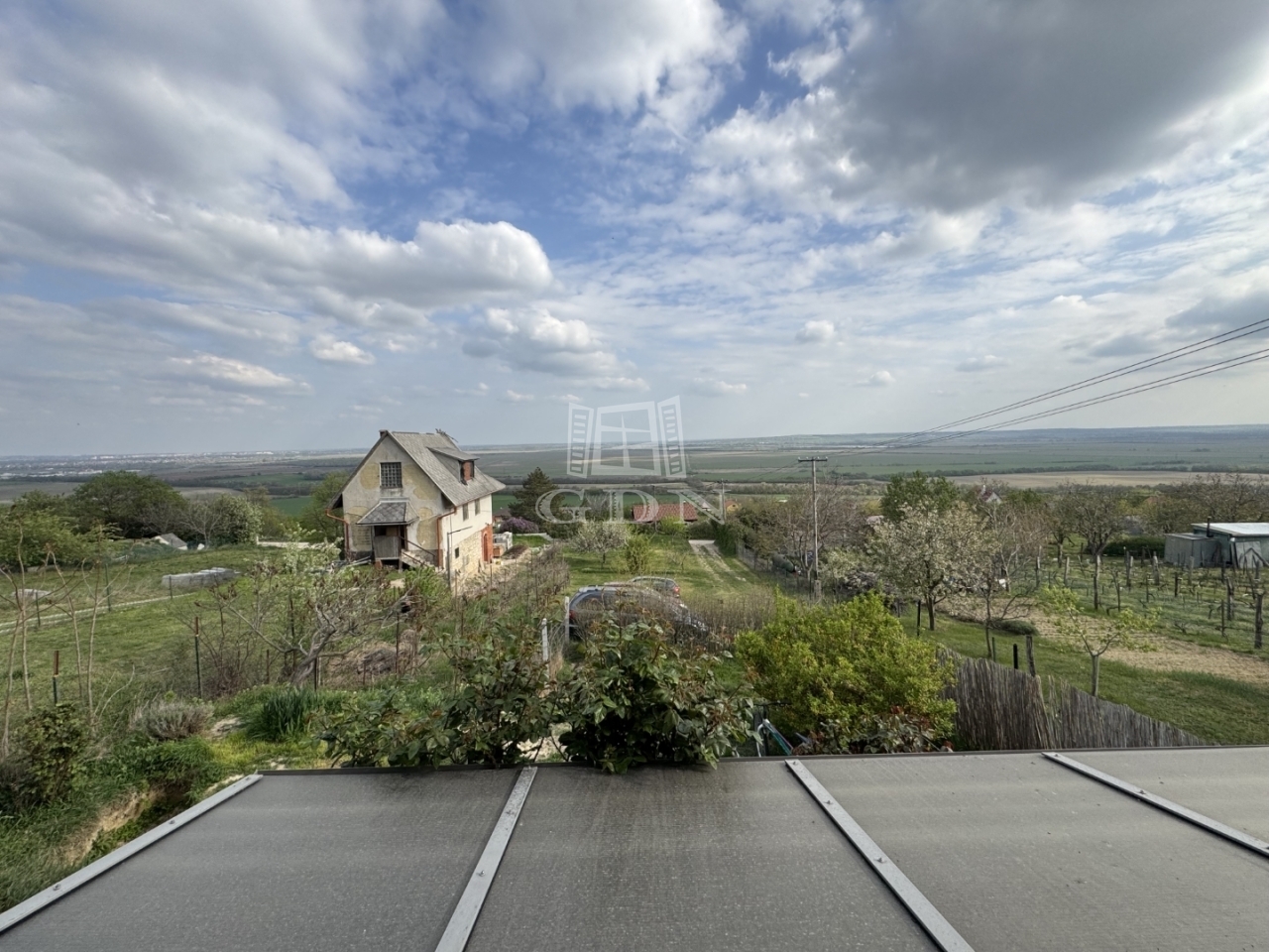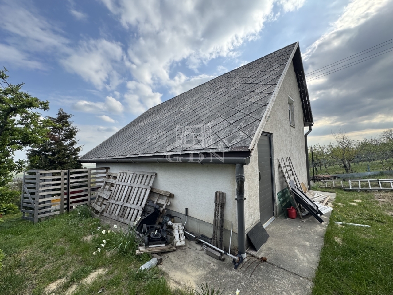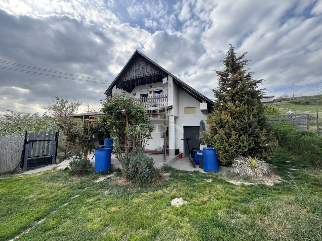 A telek 1000m2, egy része körbekerített. Enyhe lejtőn helyezkedik el.