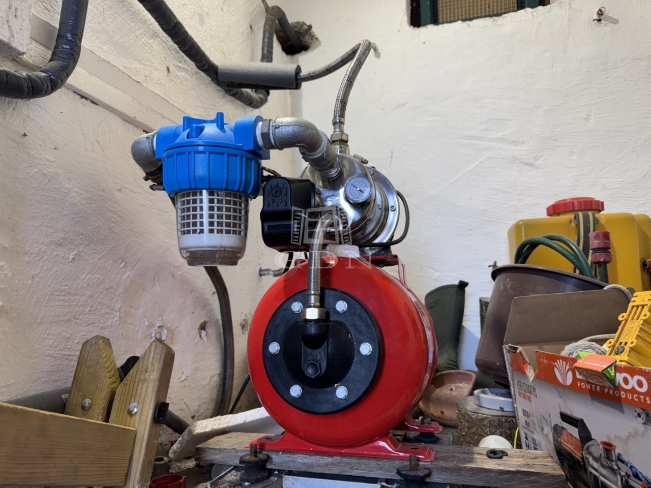 A szennyvíz elvezetése derítővel megoldott. A használati vizet egy, a terasz alatt található esővíz gyűjtő biztosítja házi vízművel, az ivóvíz egyelőre nem elérhető.