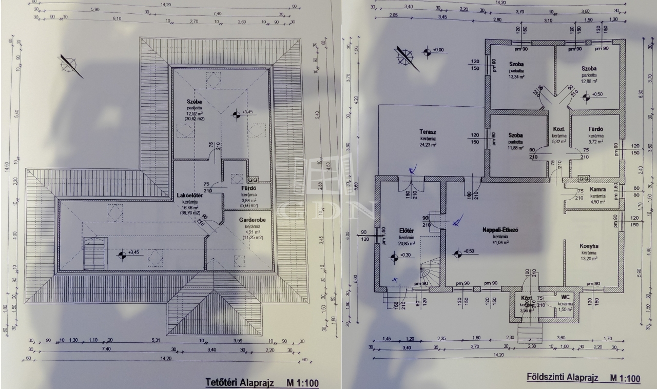 A földszinten amerikai konyhás - étkezős nagy nappali (54 nm), 3 hálószoba, fürdőszoba, külön wc, terasz (24 nm), tágas előtér, kamra, közlekedő kapott helyet.