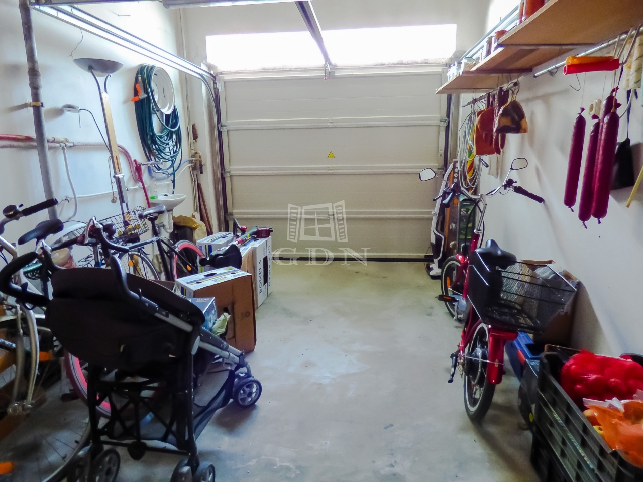 A földszinten kintről - és bentről is megközelíthető amerikai konyhás nappali (amely üzlethelyiségként is funkcionálhat - fodrászat, kozmetika, stb.), hálószoba, fürdőszoba, terasz, tágas előtér, kamra, közlekedő kapott helyet. Továbbá egy nyári konyha vagy tároló és kazánház, automata kapun keresztül megközelíthető garázs áll az új tulajdonos rendelkezésére.