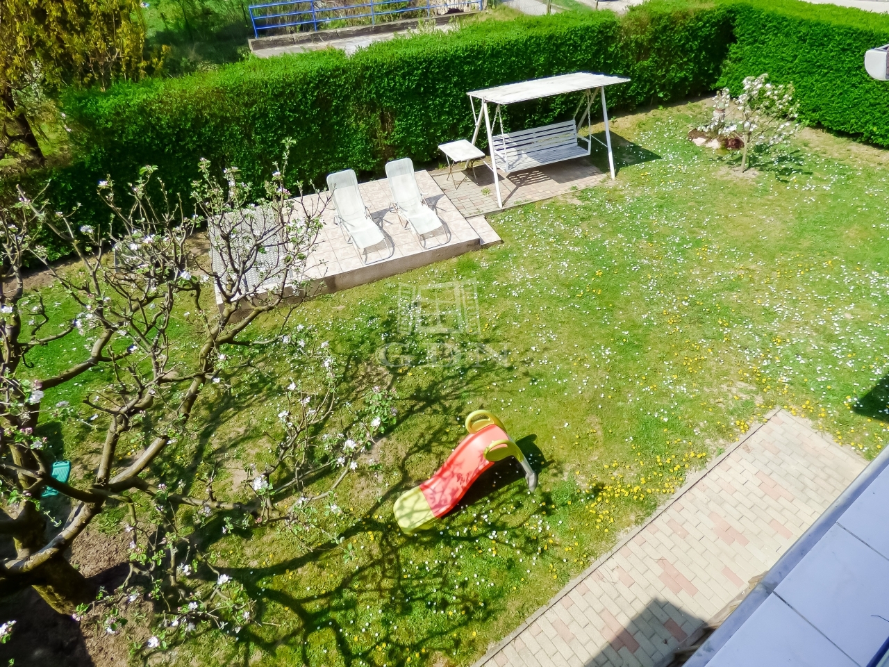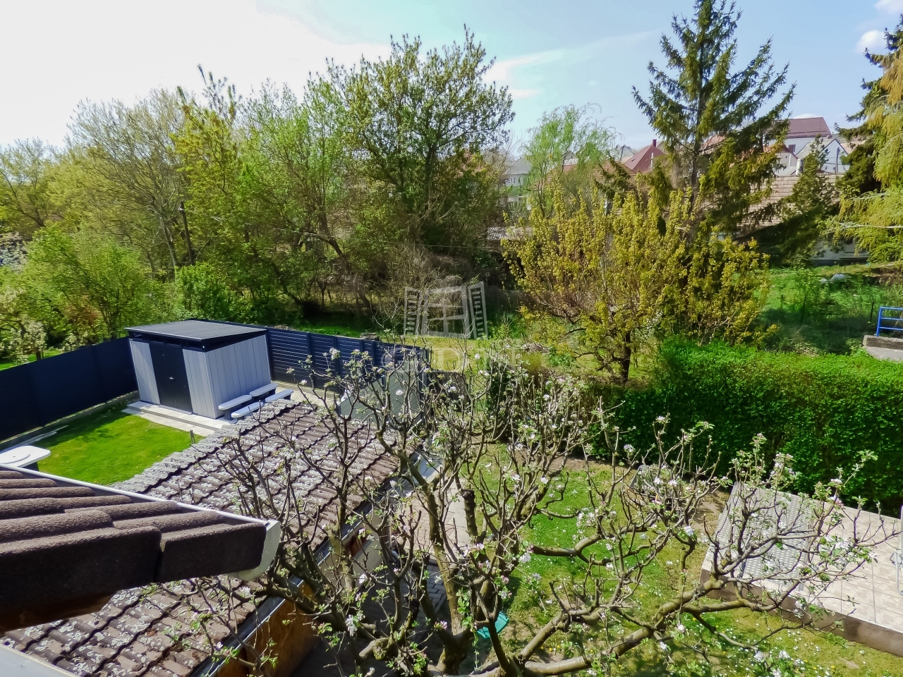 A kert gondozott, rendezett, kikapcsolódásra, pihenésre kiválóan alkalmas, az öntözés, esetlegesen egy medence feltöltése ásott kútról megoldott.