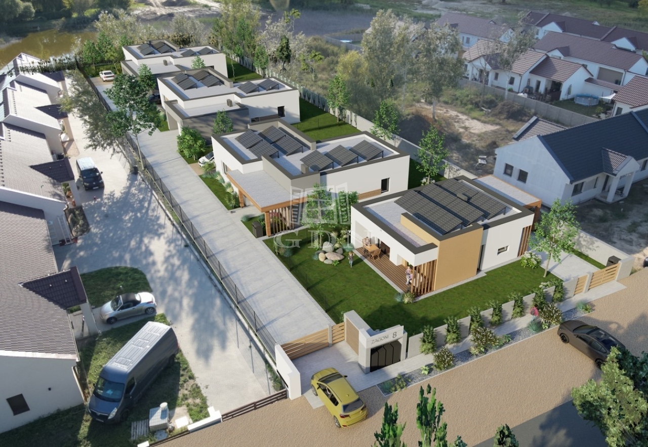 Az épületek tiszta, geometrikus vonalvezetésűek, mégis otthonosak. Az üvegfelületek összekötik a belső teret a kerttel, a meleg faburkolatok a homlokzaton, és a természetes anyaghasználat harmonikus kontrasztot alkot a modern architektúrával. A nappali–étkező–konyha egybenyitott tere az otthon szíve, míg a különválasztott és szülői és gyerek hálózóna biztosítja az intimitást és a kényelmet. A terasz és a nagyméretű kert minden igényt kielégít a család szabadban való együttlétéhez. Továbbá minden lehetőséget biztosít ahhoz, hogy az ott lakók a további elképzeléseiket is megvalósíthassák.