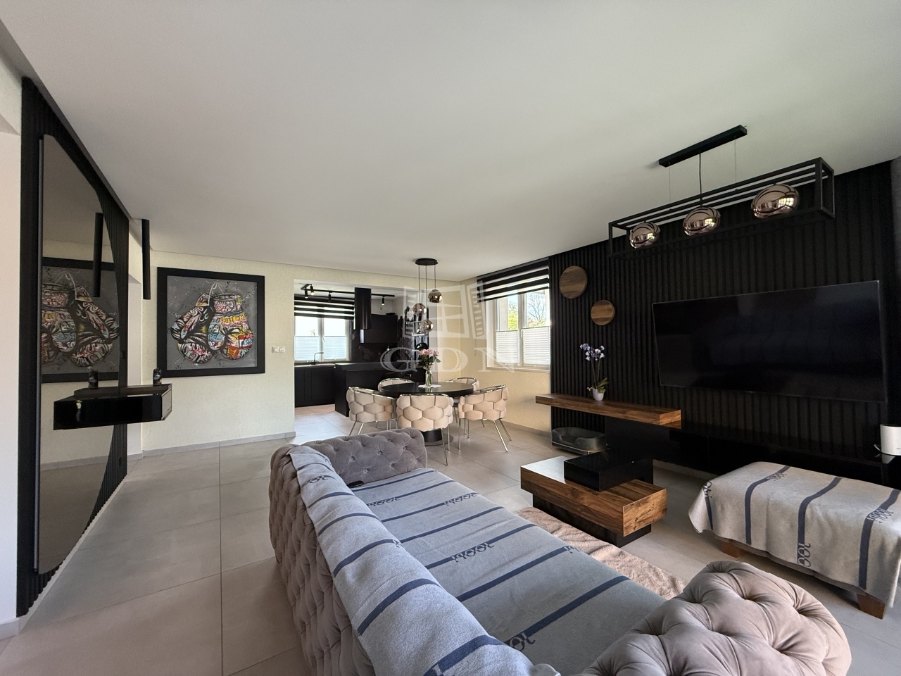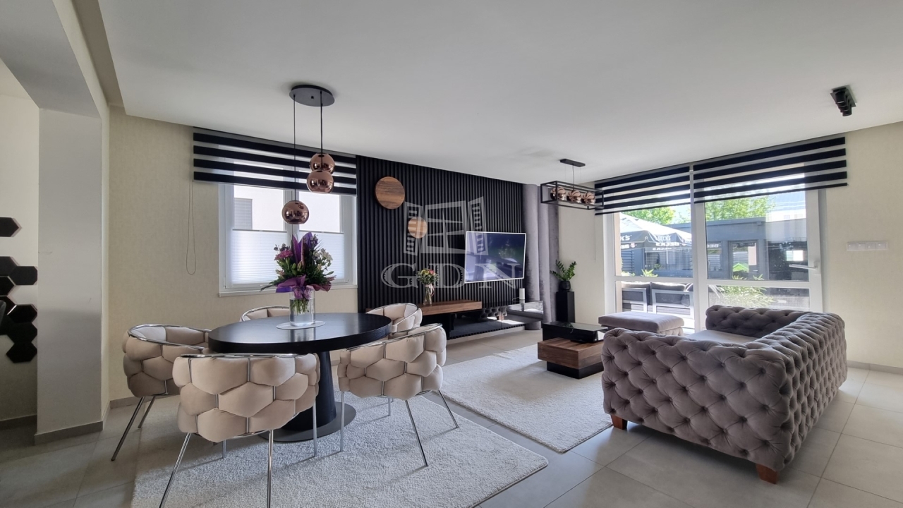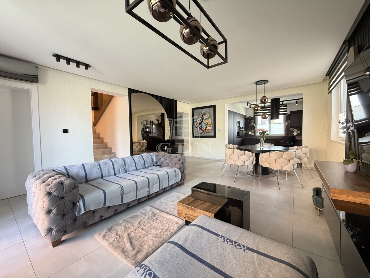 ● Nappali + 4 hálószoba (gardróbbal) + háztartási helyiség + garázs+ terasz.