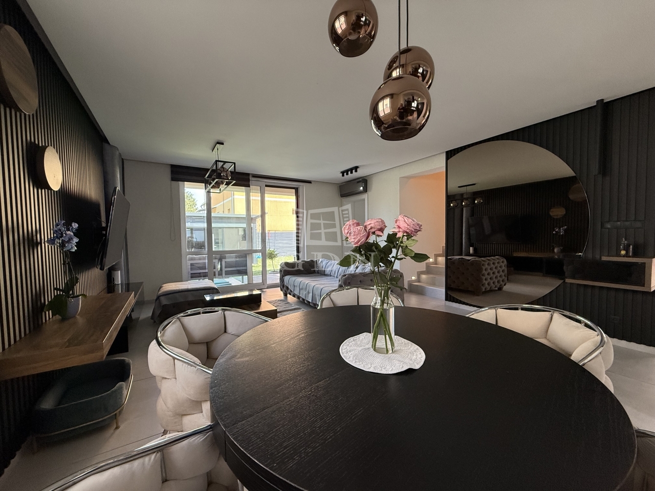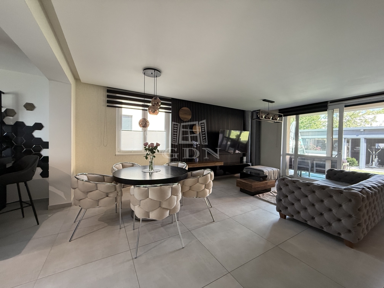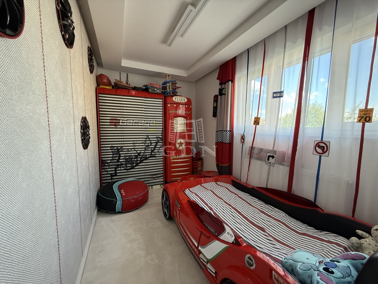 ● Nappali + 4 hálószoba (gardróbbal) + háztartási helyiség + garázs+ terasz.