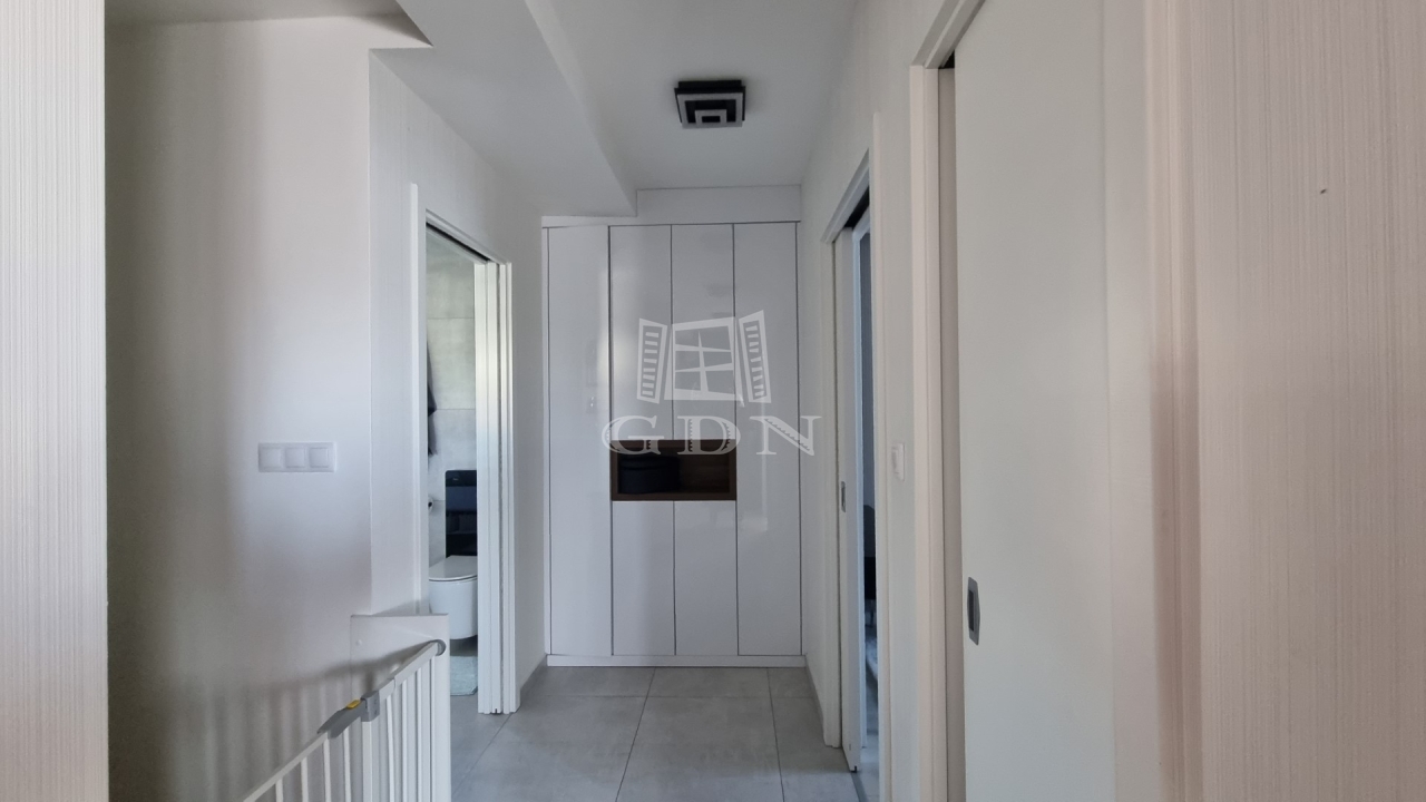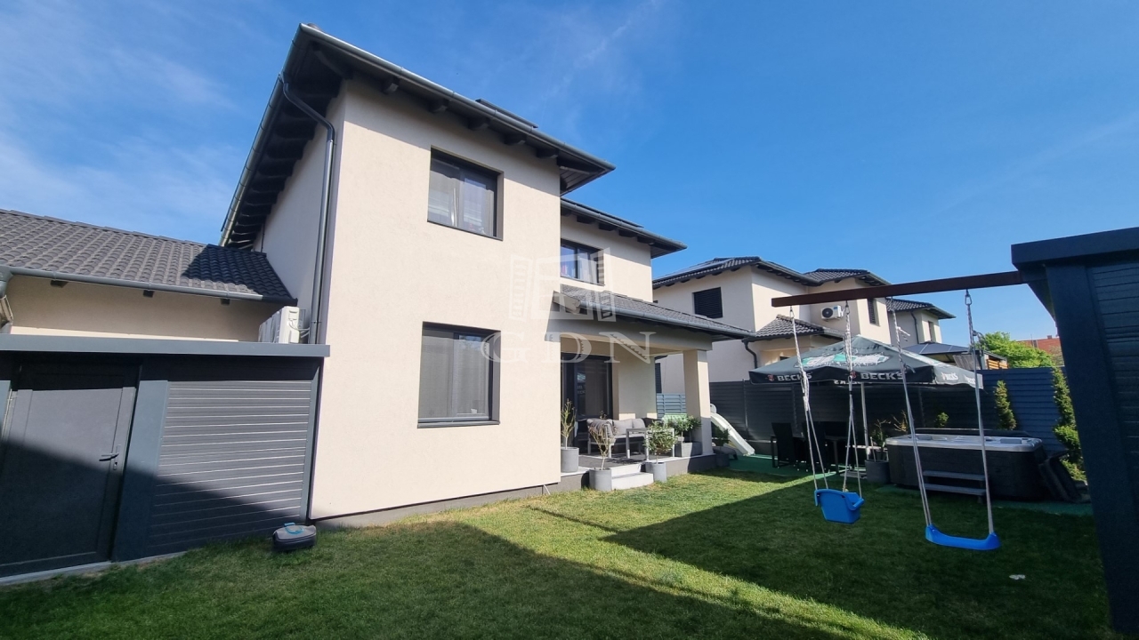 A ház téglaépítésű, szigetelt, tágas, világos, körbe napozott, minőségi anyagokból készült. A burkolatokat tekintve a szobákban magas minőségű laminált padló, a nappaliban a közlekedőben, valamint a konyhában és a vizes helyiségekben jó minőségű járólap található. A nyílászárók 3 rétegű műanyagból készültek, hőszigetelt üvegezéssel, rajtuk redőny és szúnyogháló található. A házban klíma kiépítésre került. A 20m2-es terasz, kényelmes pihenést biztosít. Az utcai kapu elektromosan nyitható. A telek örökzöldekkel, dísznövényekkel parkosított, pihenő terasz, gyermekjátszótér, és egy 27m2-es szauna/konditerem kiépített zuhanyzóval, gépészettel, valamint egy jakuzzi található benne.