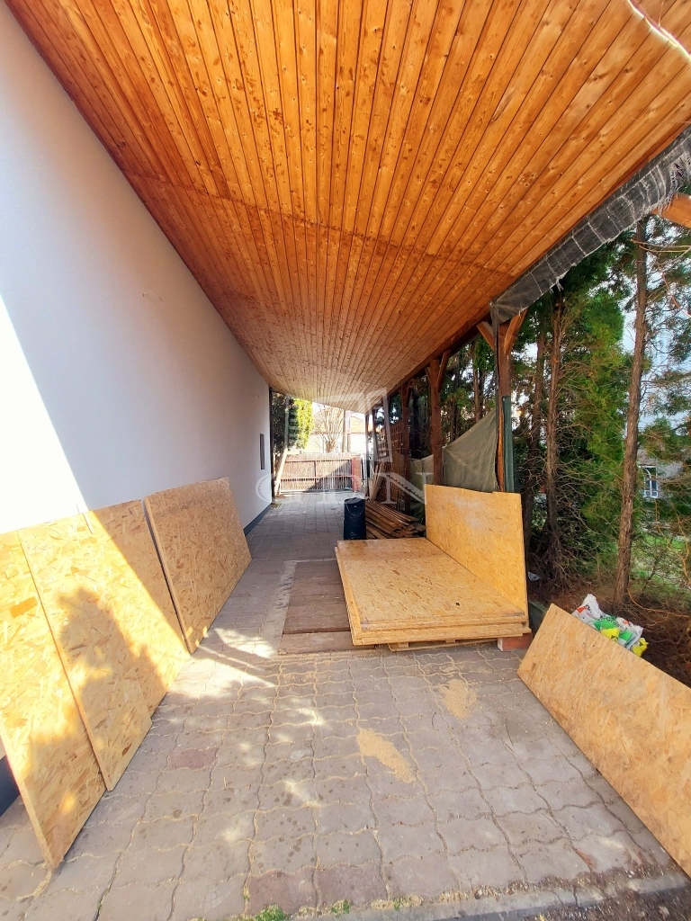 Eladásra kínálok egy 140 nm nagyságú téglaépítésű felújítás alatt álló 2 szintes ikerház felet. A földszinten hatalmas amerikai konyhás nappali, fürdőszoba, és egy külön bejáratú önálló lakrész: szoba (akár iroda) kis fürdőszobával és fedett terasz találhatóak. Az emeleten 4 hálószoba, fürdőszoba, közlekedő várja lakóit. A nyílászárók műanyagra lettek cserélve. A fűtés gázcirkó készülékről működik. A kert rendezett. 3 autó számára fedett beálló biztosított. Az épület hőszigetelést kapott. A tető is meg lesz újítva. Iskola, óvoda, rendelő a közelben.