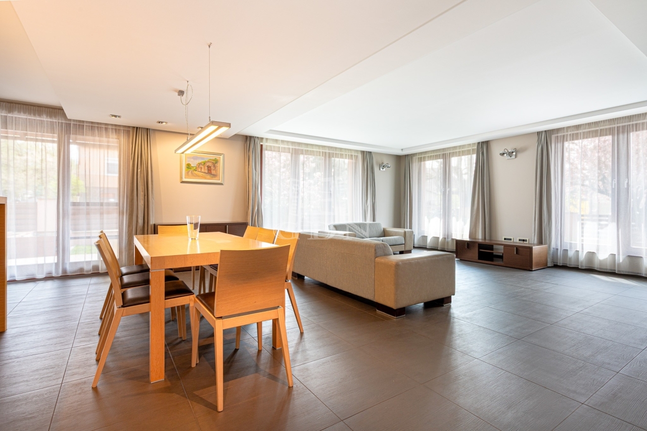• Földszinten: Nappali + konyha + étkező (60 m²), 1 hálószoba gardróbbal, fürdőszoba wc-vel ( kád és zuhany is), vendég wc