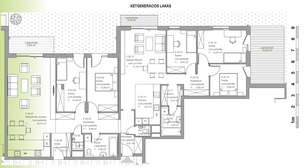 -II.09 lakás 90,1 m2; terasz: 87,86 + 22,17 m2 ár: ELKELT!