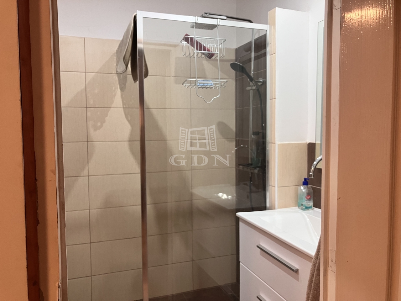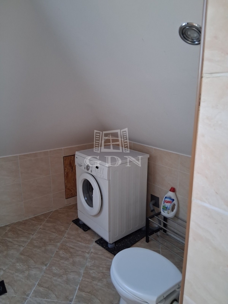 A fürdőszoba modern kialakítású, zuhanykabinnal, külön WC-vel, mosógép elhelyezési lehetőséggel.