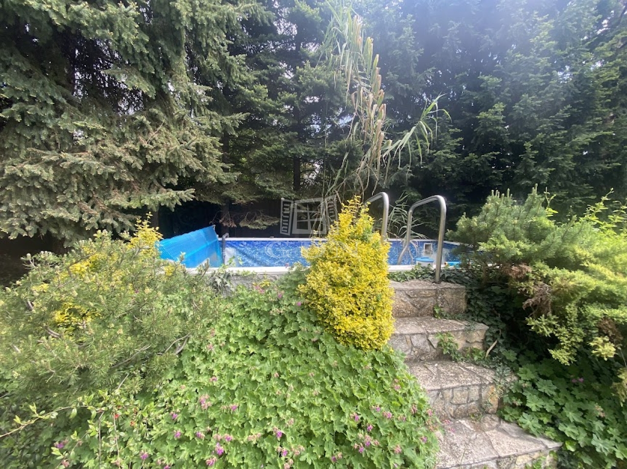 -különleges, egyedi hangulatú, örökzöldekkel beültetett,