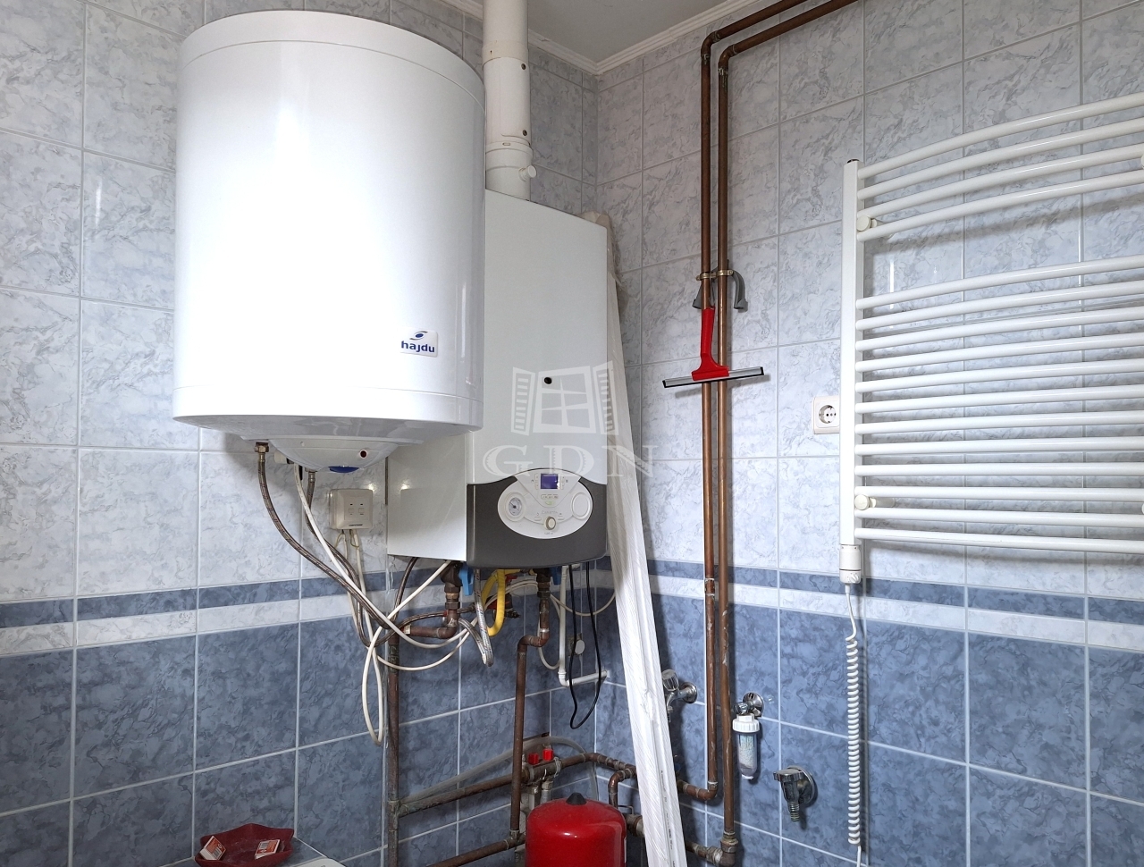 A fűtésről gázcirkó gondoskodik, a meleg vizet pedig két villanybojler szolgáltatja.