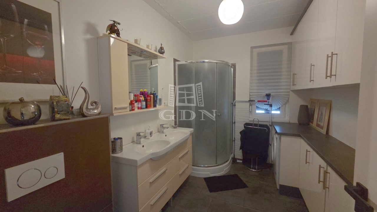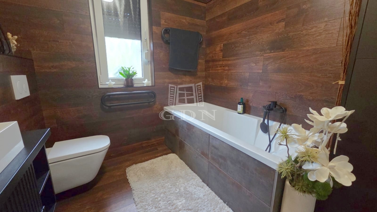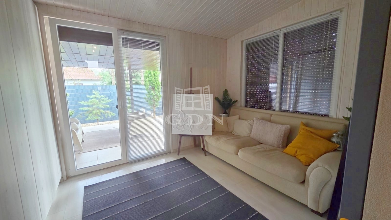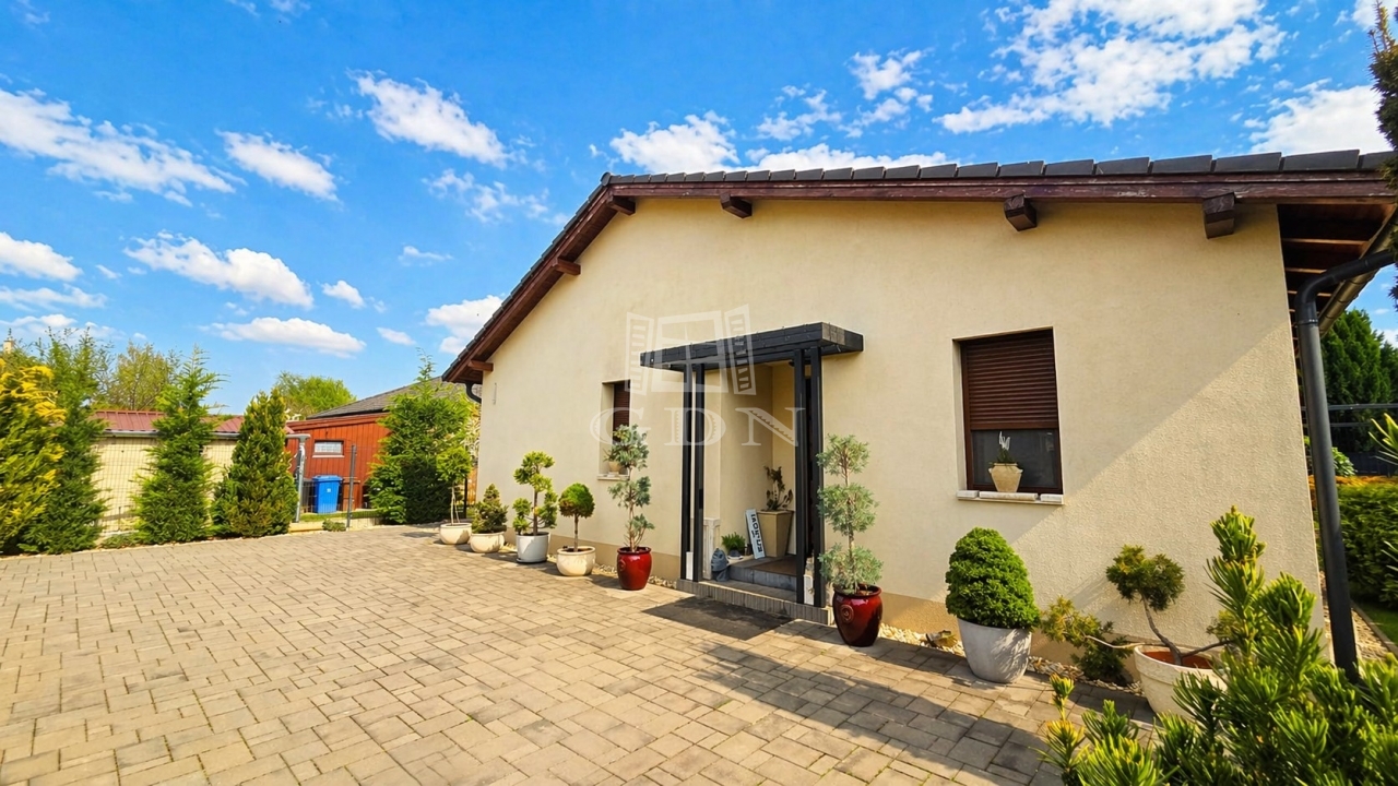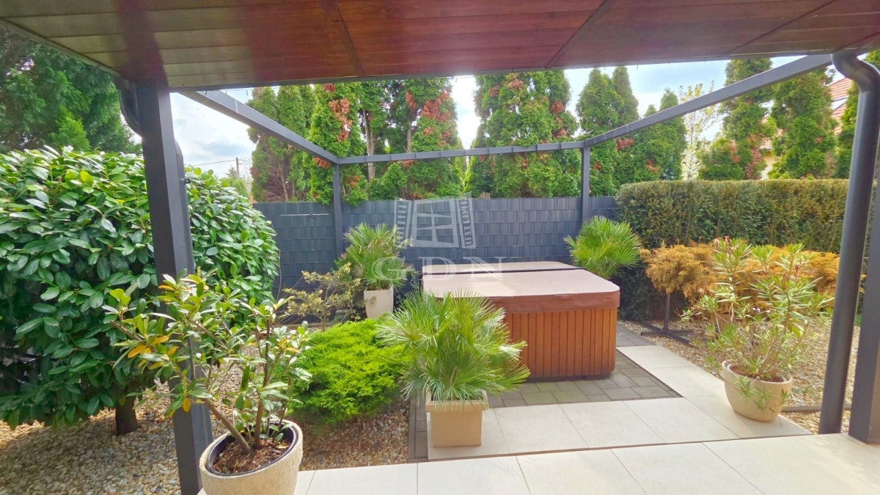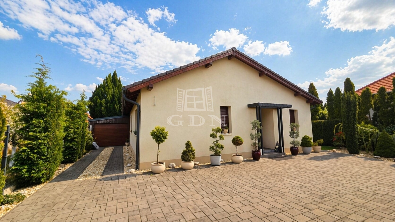 Ez a 2016-ban épült családi ház egy fiatal, rendezett lakóövezetben található, és letisztult építészetével, valamint magas minőségű kivitelezésével tűnik ki. Az elrendezése különösen jól átgondolt: a tágas, világos nappali–étkező a ház központi tere, amelyhez egy nyitott, mégis enyhén elkülönített konyha kapcsolódik. A fedett terasz és a télikert közvetlen kapcsolata harmonikus átmenetet biztosít a belső és külső terek között – ideális a mindennapokra és vendégfogadásra egyaránt.