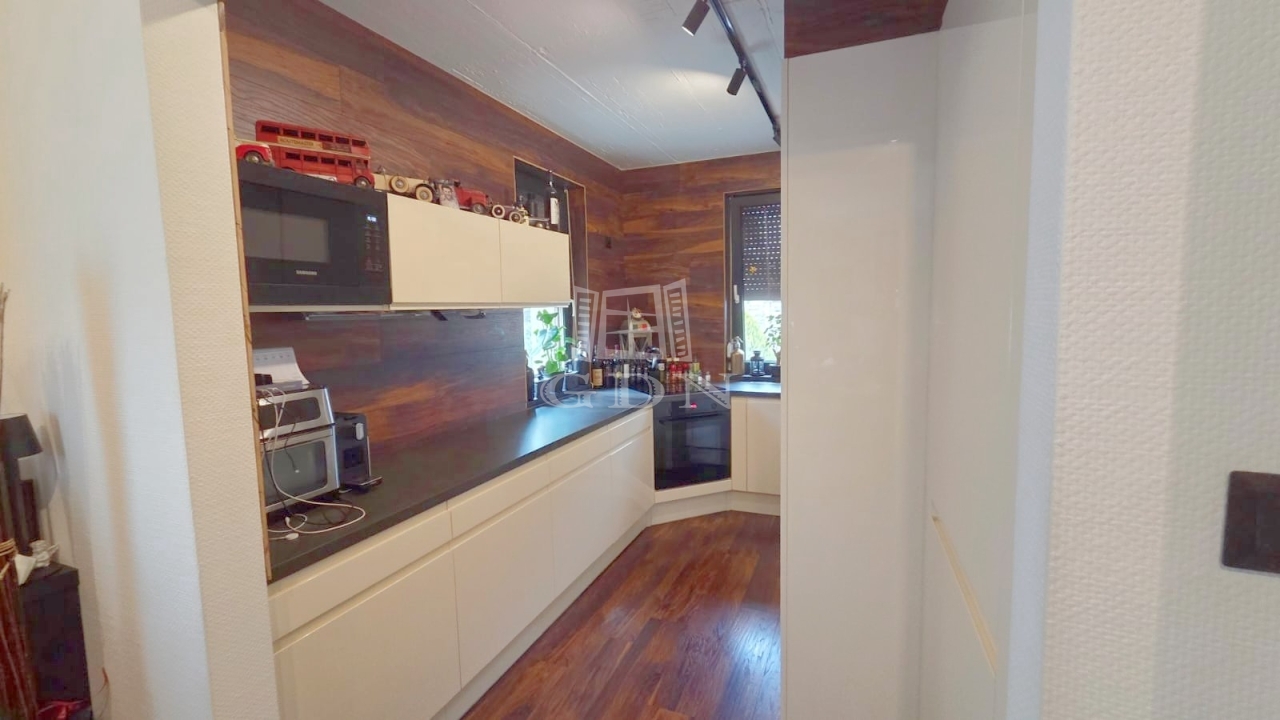 A három jól kialakított hálószoba, két fürdőszoba, valamint a további helyiségek – például kamra és tárolók – elegendő teret és rendszert biztosítanak. A fűtött télikert rugalmasan használható vendégszobaként vagy pihenőtérként. Különösen praktikusak az egyedileg készített beépített szekrények, amelyek bőséges tárolóhelyet kínálnak.